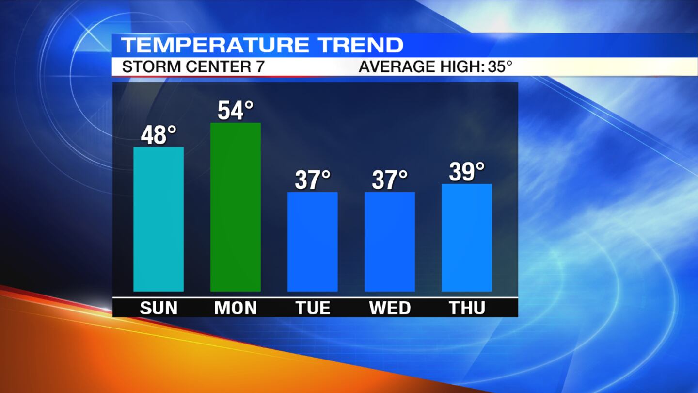 Wednesday: It will be another cool day under partly cloudy skies. Highs will be in the middle to upper 30s.
