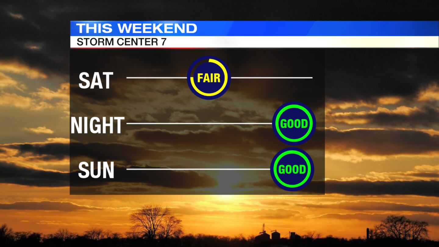 FRIDAY: Mostly sunny skies are expected to start the day with increasing clouds late. Expect a chance for showers by late evening. Highs will be near 40 degrees.