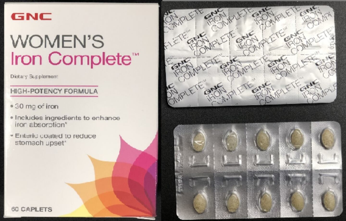 Packages of Women’s Iron Complete Dietary Supplements 60-count caplets are under recall because they are not child resistant and pose a serious health hazard if ingested by children, according to the C.P.S.C.