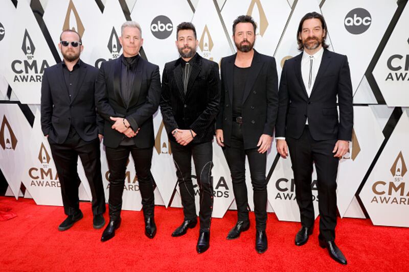 Photos: CMA Awards 2021 red carpet looks Whit Sellers, Trevor Rosen, Matthew Ramsey, Brad Tursi and Geoff Sprung of Old Dominion attend the 55th annual Country Music Association Awards at the Bridgestone Arena on November 10, 2021, in Nashville, Tennessee. (Jason Kempin/Getty Images)