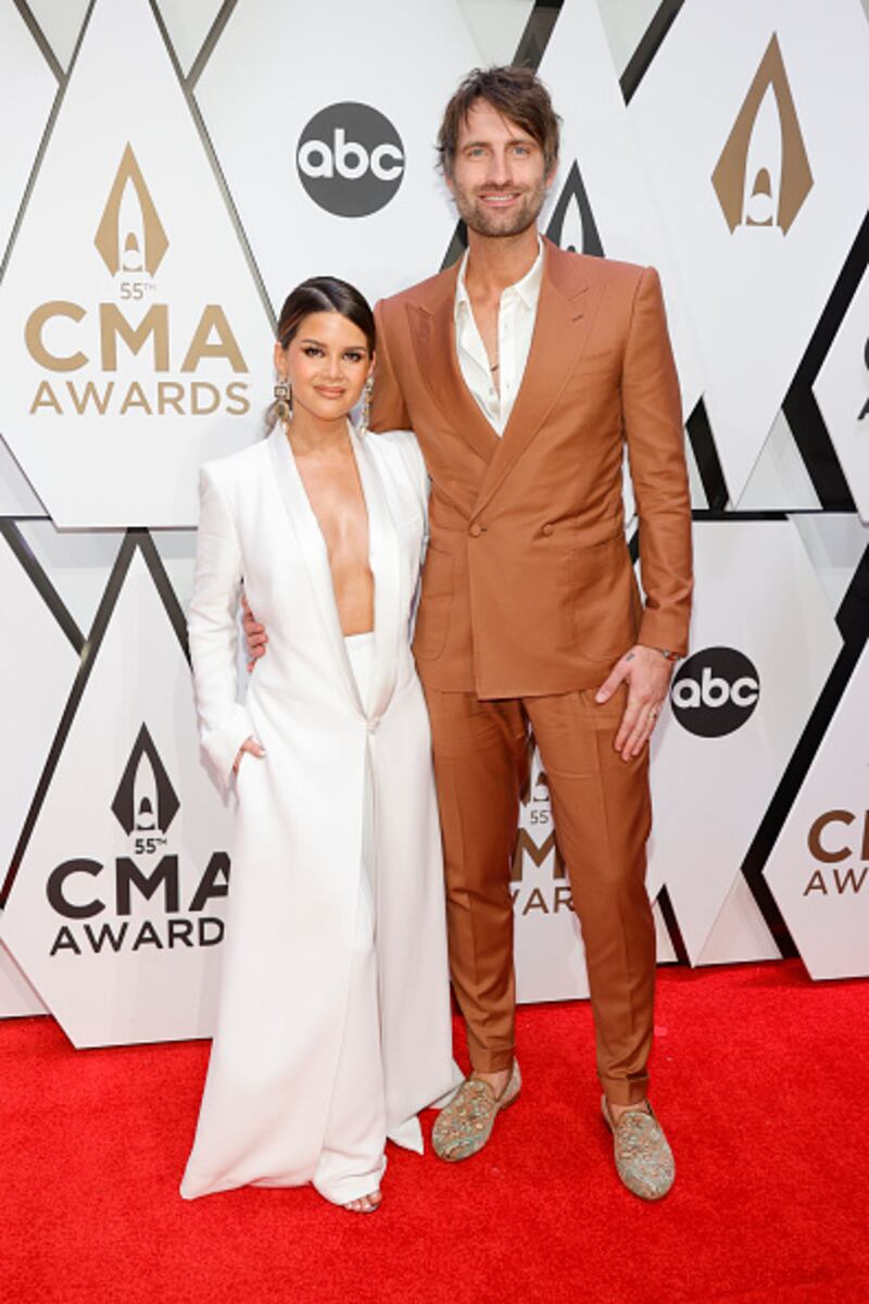 Photos: CMA Awards 2021 red carpet looks Maren Morris and Ryan Hurd attend the 55th annual Country Music Association Awards at the Bridgestone Arena on November 10, 2021, in Nashville, Tennessee. (Jason Kempin/Getty Images)
