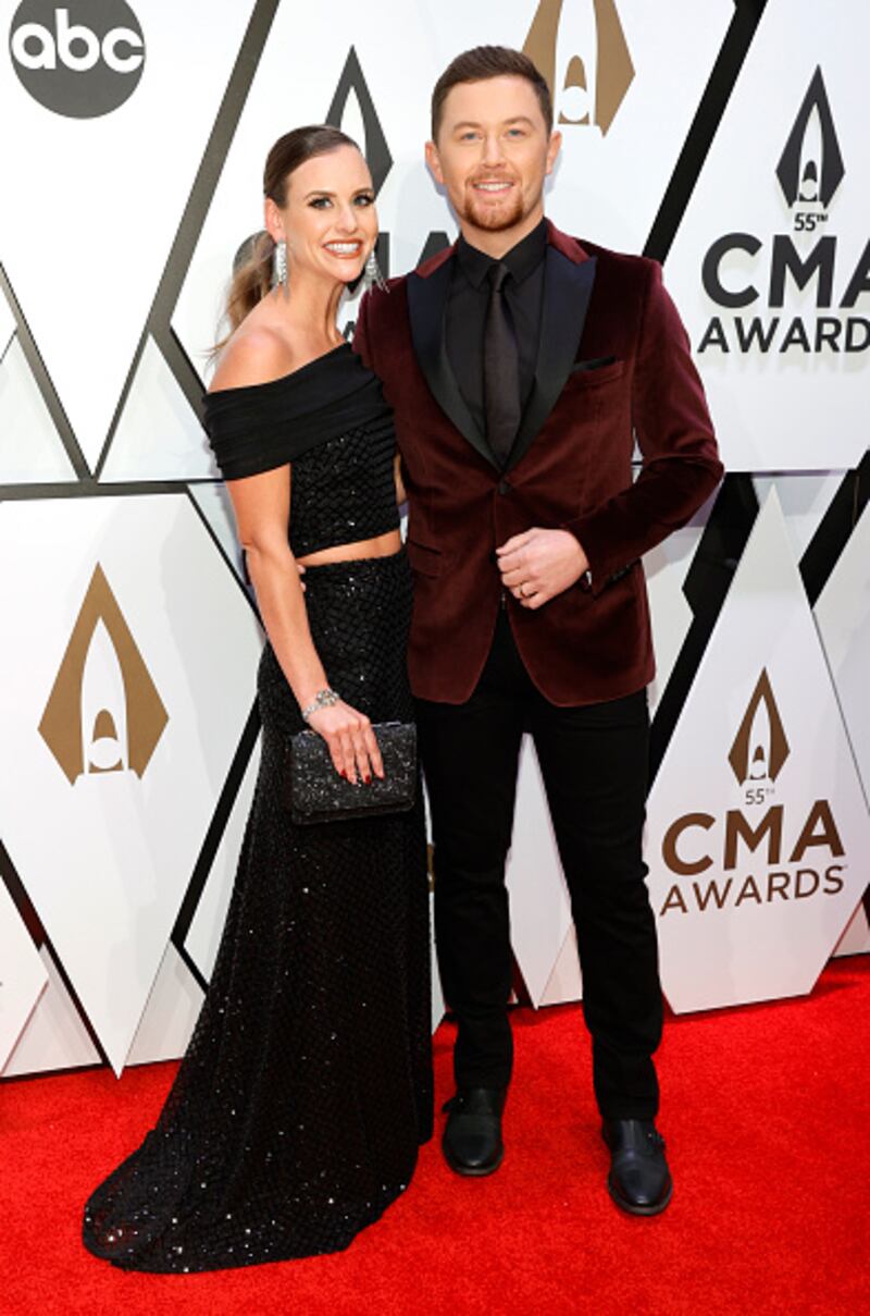 Photos: CMA Awards 2021 red carpet looks Gabi Dugal McCreery and Scotty McCreery attend the 55th annual Country Music Association Awards at the Bridgestone Arena on November 10, 2021, in Nashville, Tennessee. (Jason Kempin/Getty Images)