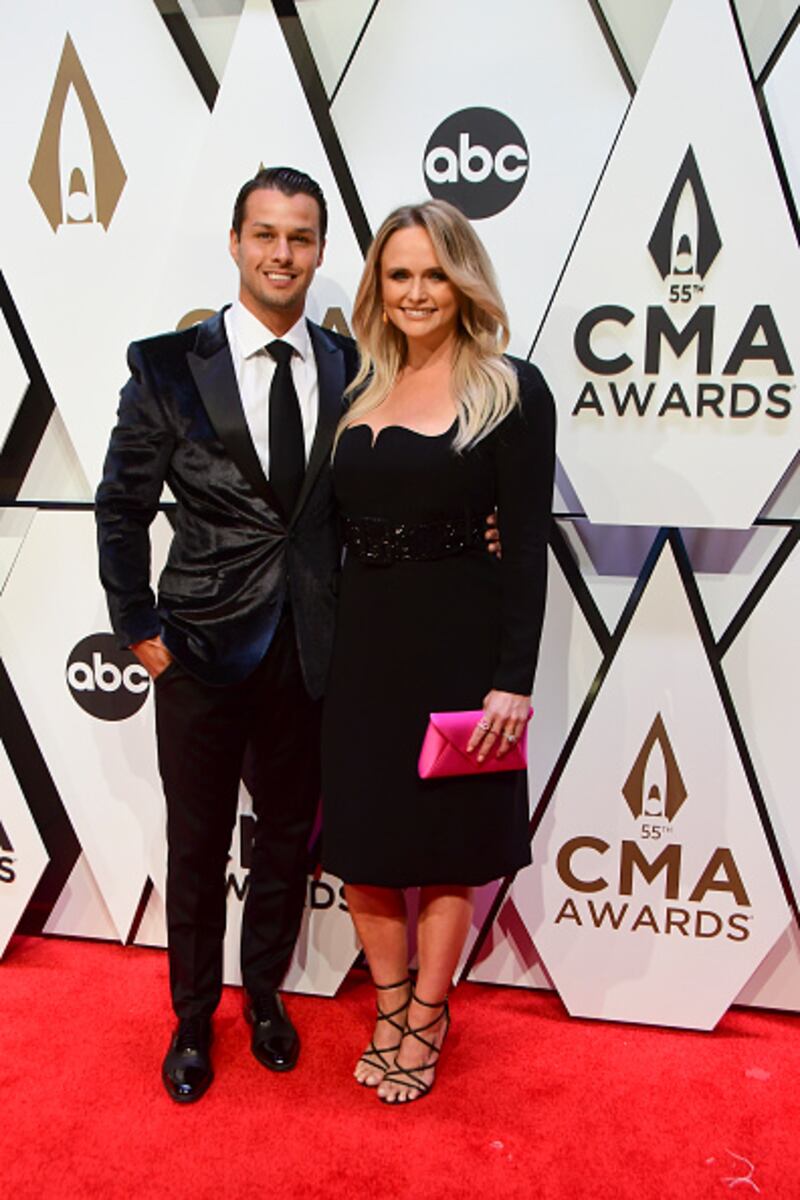 Photos: CMA Awards 2021 red carpet looks Brendan McLoughlin and Miranda Lambert arrive at the 55th annual CMA Awards at the Bridgestone Arena in Nashville, Tennessee, on Wednesday, Nov. 10, 2021. (ABC via Getty Images)