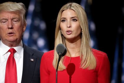 RNC Day 4 CLEVELAND, OH - JULY 21: Ivanka Trump (C) stands on stage along with her father, Republican presidential candidate Donald Trump (Center-L), prior to the start of the fourth day of the Republican National Convention on July 21, 2016 at the Quicken Loans Arena in Cleveland, Ohio. Republican presidential candidate Donald Trump received the number of votes needed to secure the party's nomination. An estimated 50,000 people are expected in Cleveland, including hundreds of protesters and members of the media. The four-day Republican National Convention kicked off on July 18. (Photo by Chip Somodevilla/Getty Images) (Chip Somodevilla)