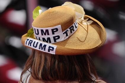 RNC Day 4 CLEVELAND, OH - JULY 21: A delegate wears a hat with campaign memorabilia prior to the start of the fourth day of the Republican National Convention on July 21, 2016 at the Quicken Loans Arena in Cleveland, Ohio. Republican presidential candidate Donald Trump received the number of votes needed to secure the party's nomination. An estimated 50,000 people are expected in Cleveland, including hundreds of protesters and members of the media. The four-day Republican National Convention kicked off on July 18. (Photo by Jeff Swensen/Getty Images) (Jeff Swensen)