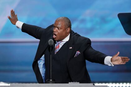 The Latest: Chants of 'All Lives Matter' at GOP convention Pastor Mark Burns speaks during the final day of the Republican National Convention in Cleveland, Thursday, July 21, 2016. (AP Photo/Mark J. Terrill)