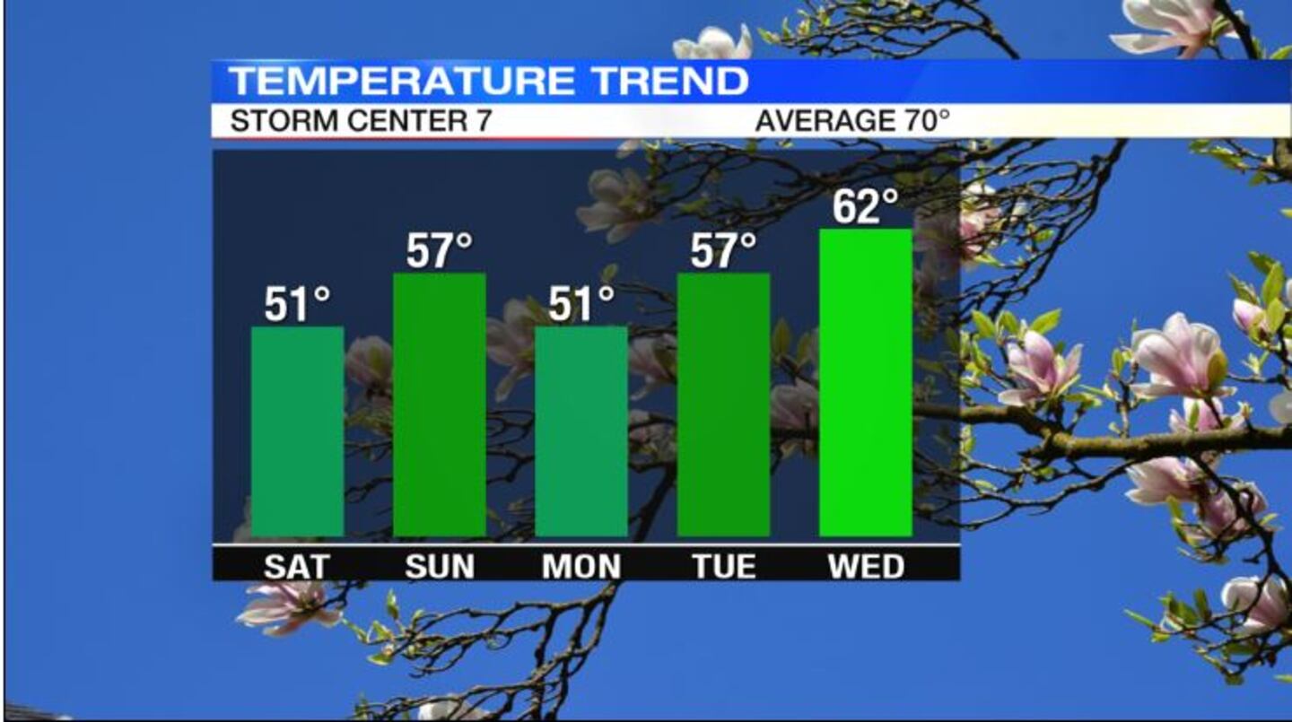 Highs will only climb into the 50s for the rest of the weekend and into next week. A warm up will arrive starting on Wednesday with highs climbing into the 60s.