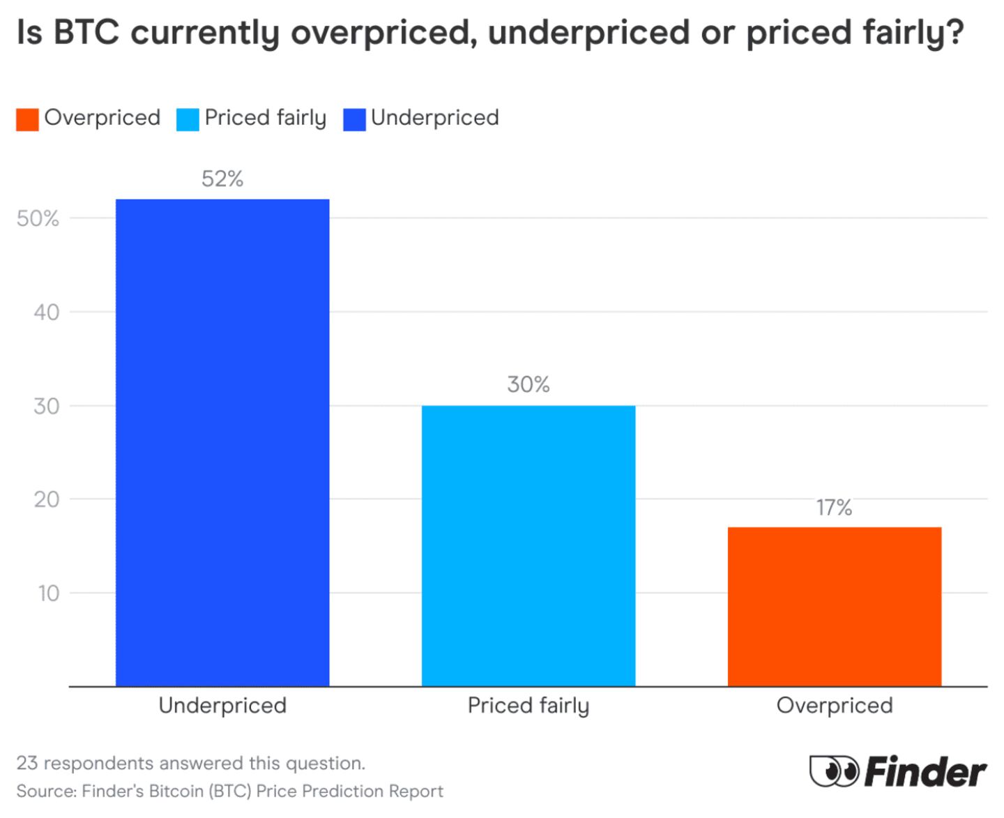 A little over half of panel members (52%) think bitcoin is currently underpriced.