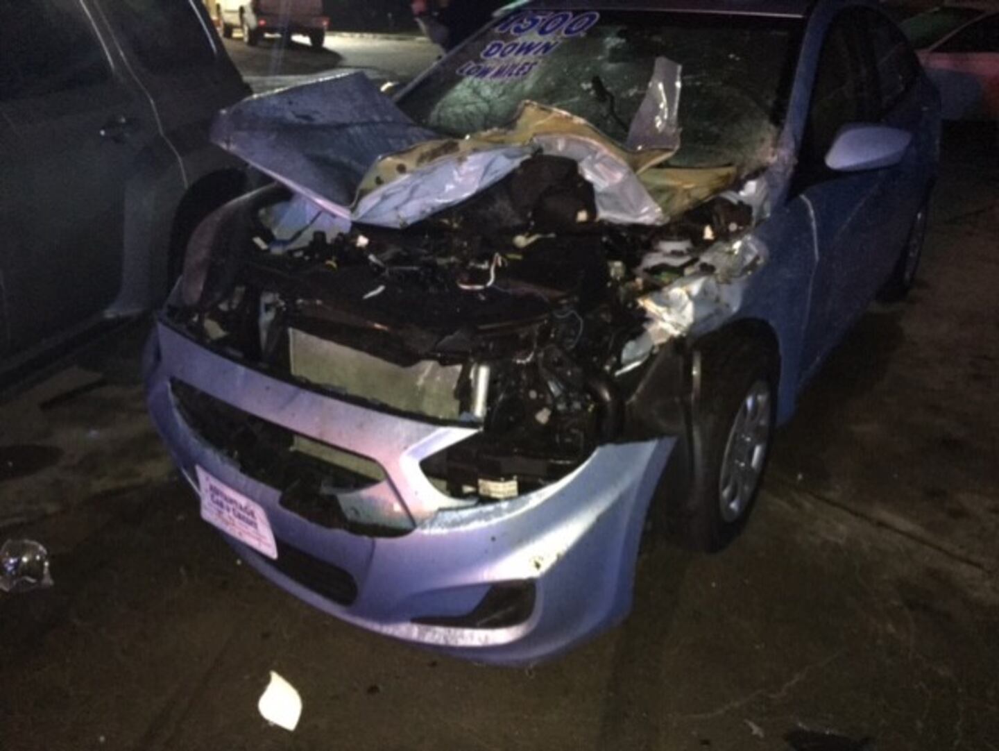 Riverside police are searching for the driver of a truck that crashed into several cars at a Riverside buy here, pay here lot sometime before 2 a.m. early Sunday.