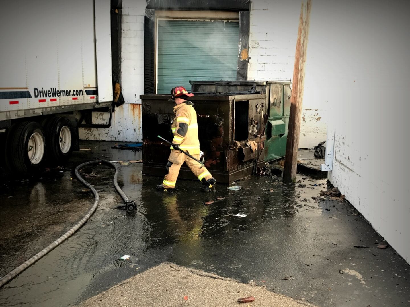 Crews were dispatched about 5:10 p.m. to 1933 Needmore Road on a report of a fire in the typically large, metal trash holder. A check of the address comes back as Harbor Freight Tools.