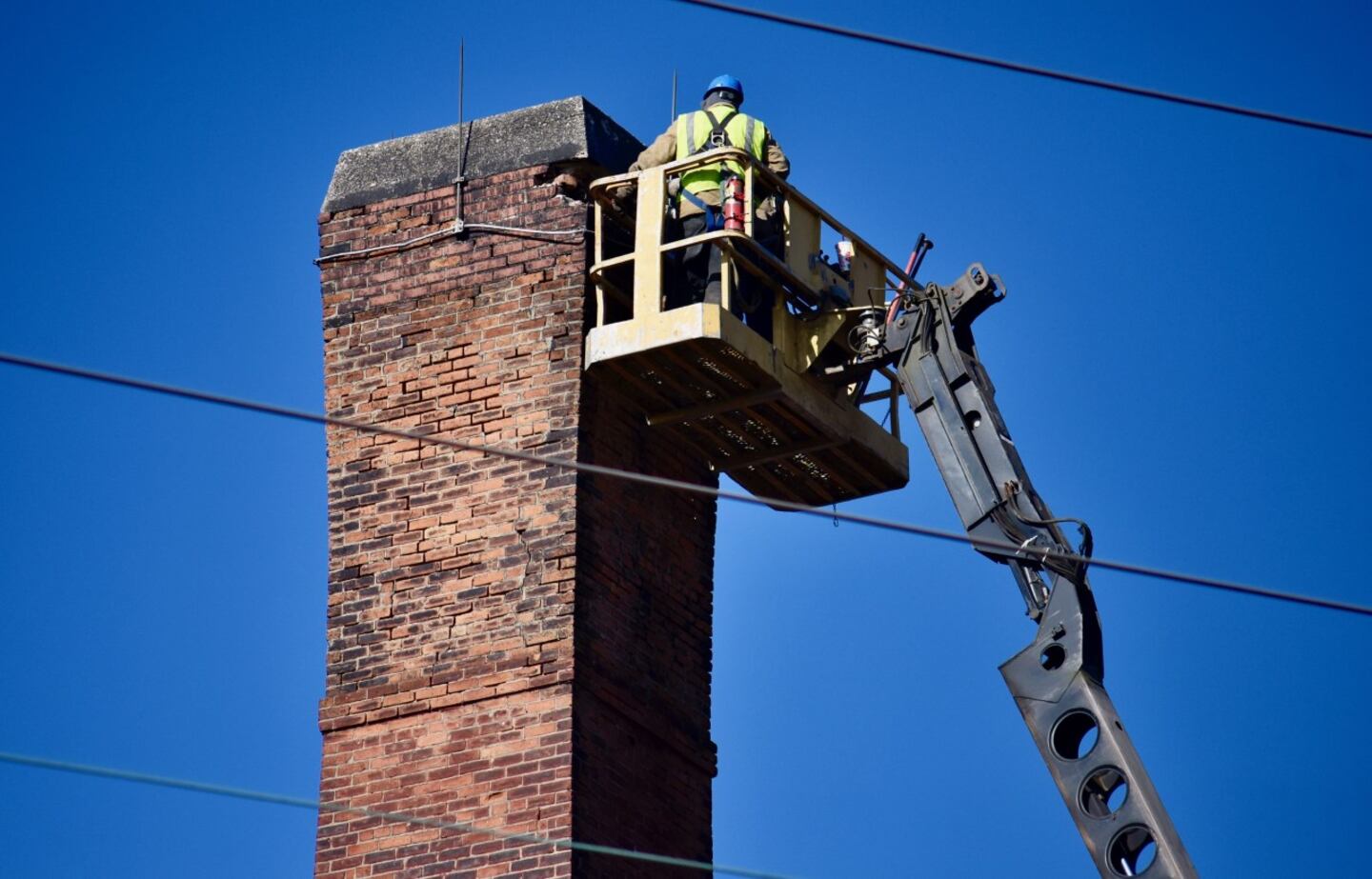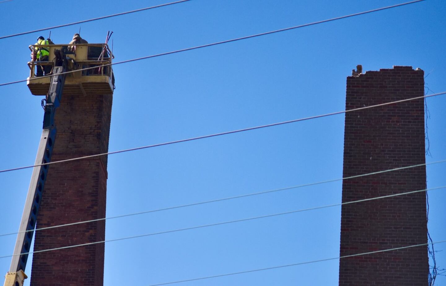 Lolli said by mid-Sunday afternoon a portion of one smoke stack dropped about a fourth of its height.
