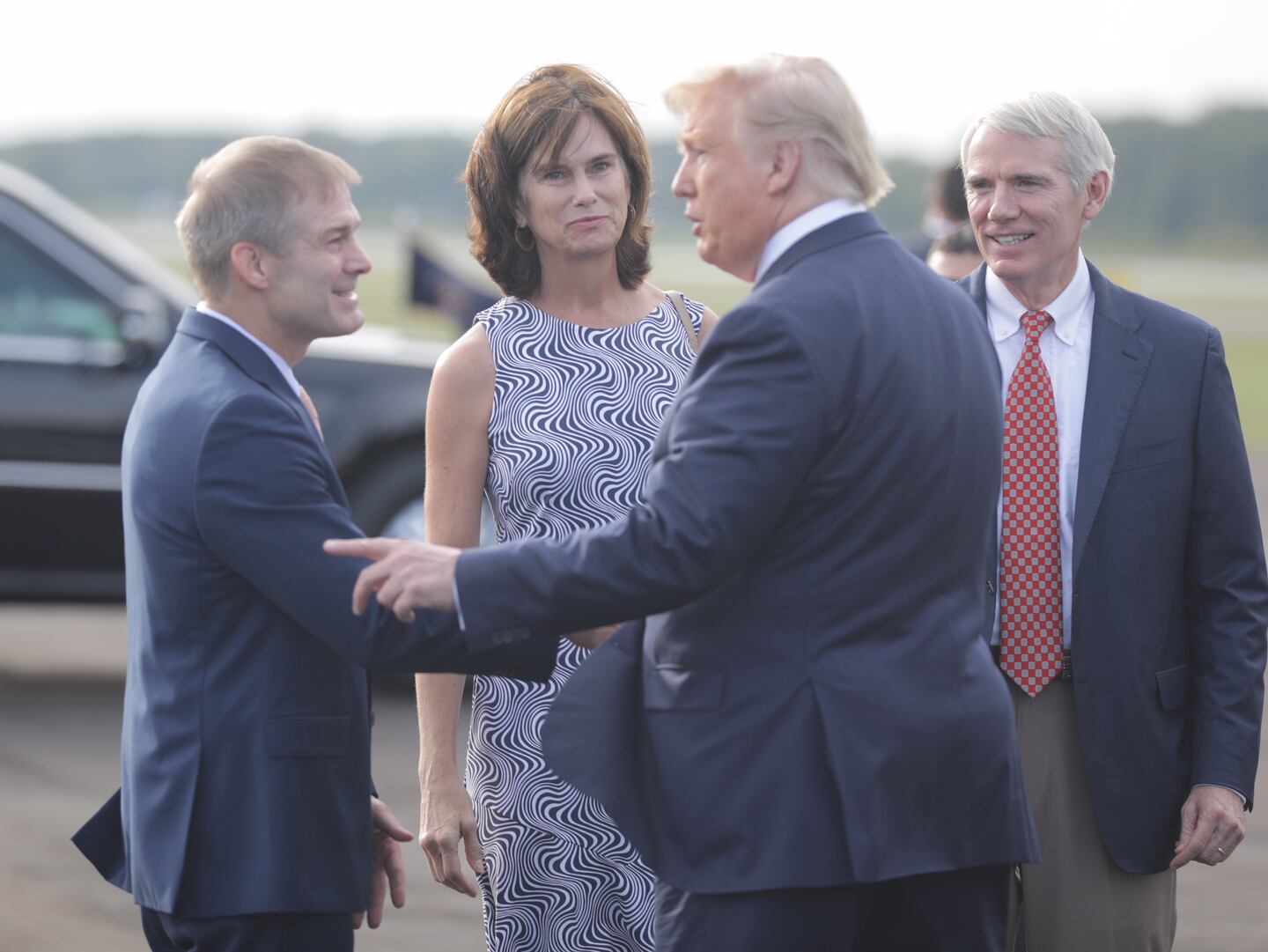U.S. Rep. Jim Jordan, R-Urbana, and U.S. Sen. Rob Portman and his wife Jane welcomed the president at the airport.