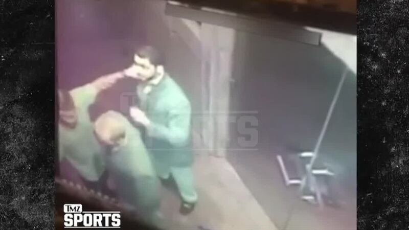 Latimer is shown talking to the bouncer with his hand on the bouncer’s shoulder, which the bouncer removes repeatedly. Latimer then slaps the bouncer, which the bouncer retaliates to with a punch and then proceeds to pepper spray the football star.