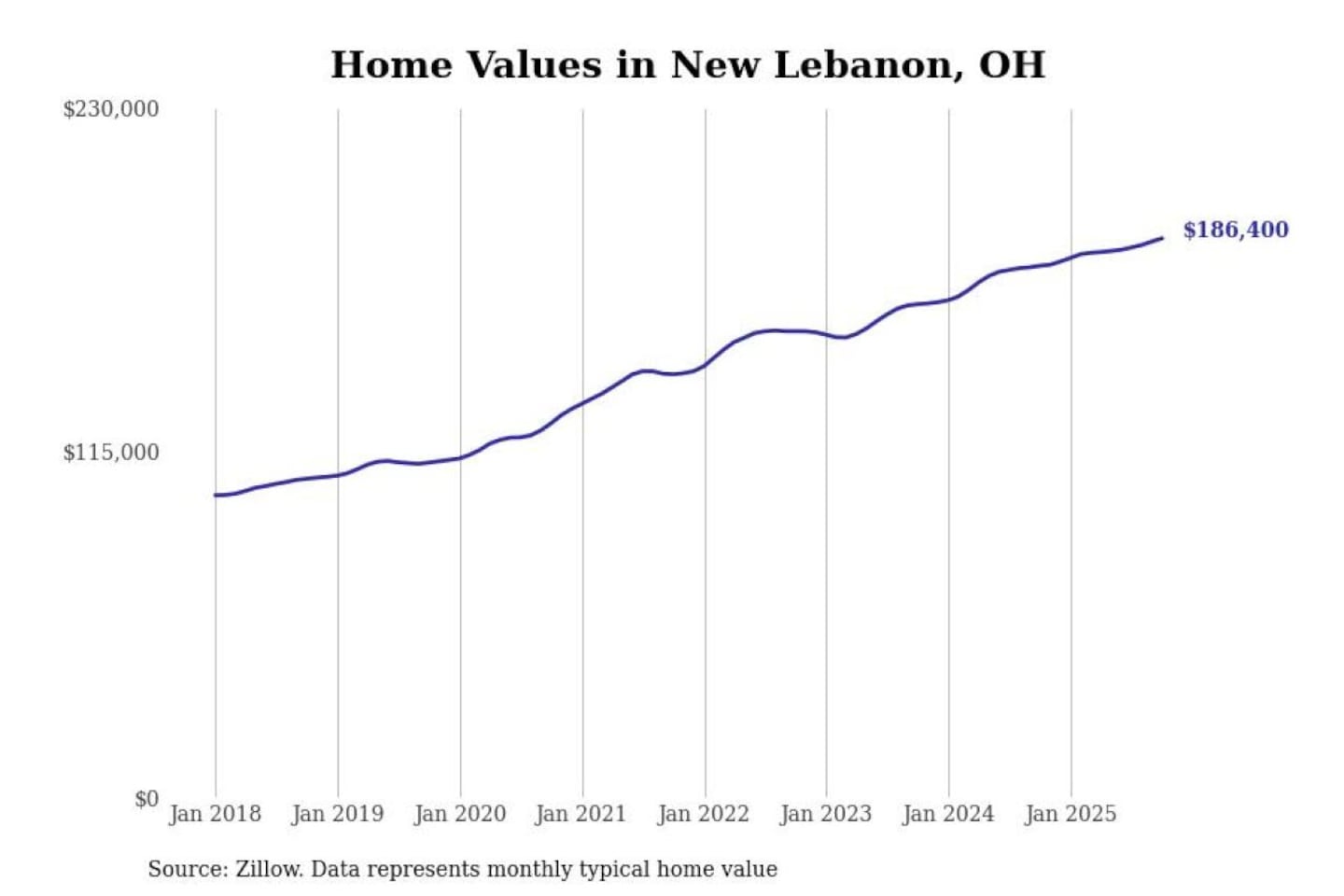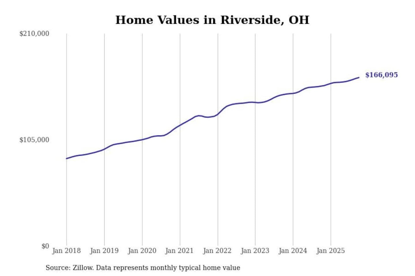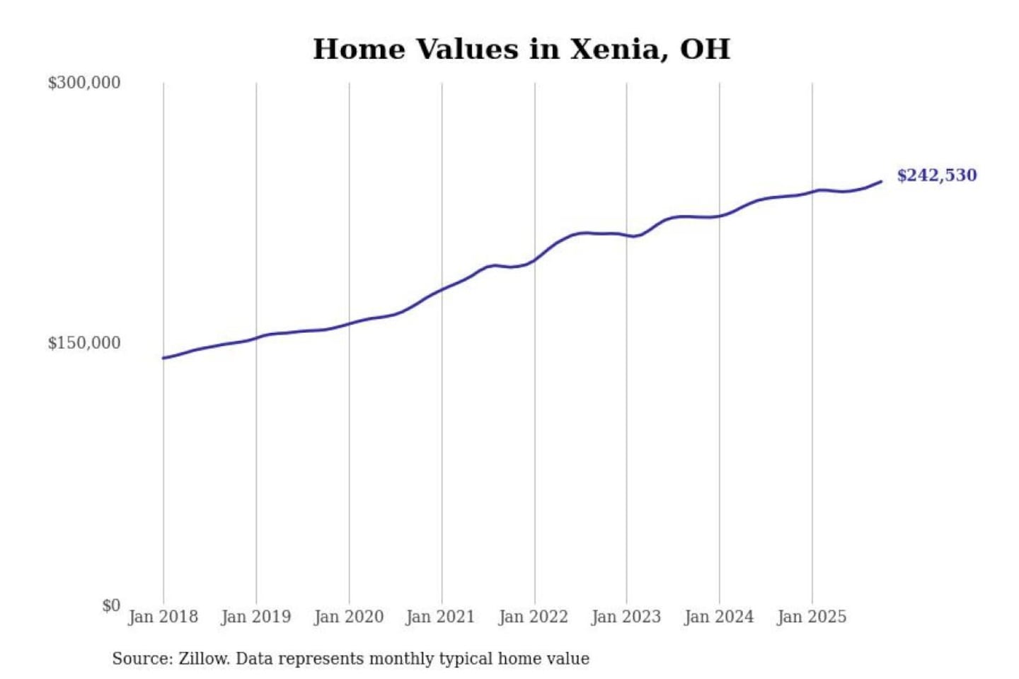 Stacker compiled a list of cities with the most expensive homes in the Dayton-Kettering, OH metro area using data from Zillow. Charts show the monthly typical home value since January 2018.