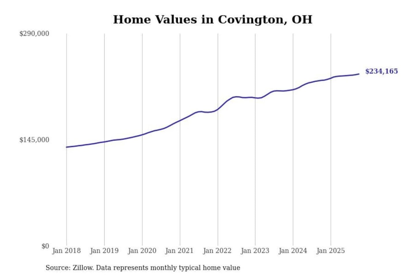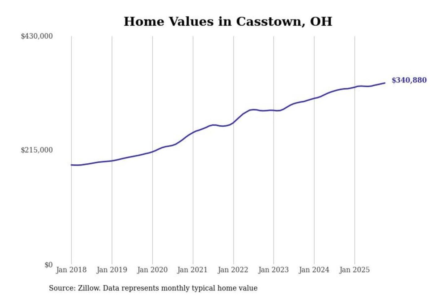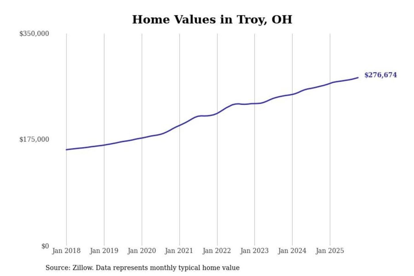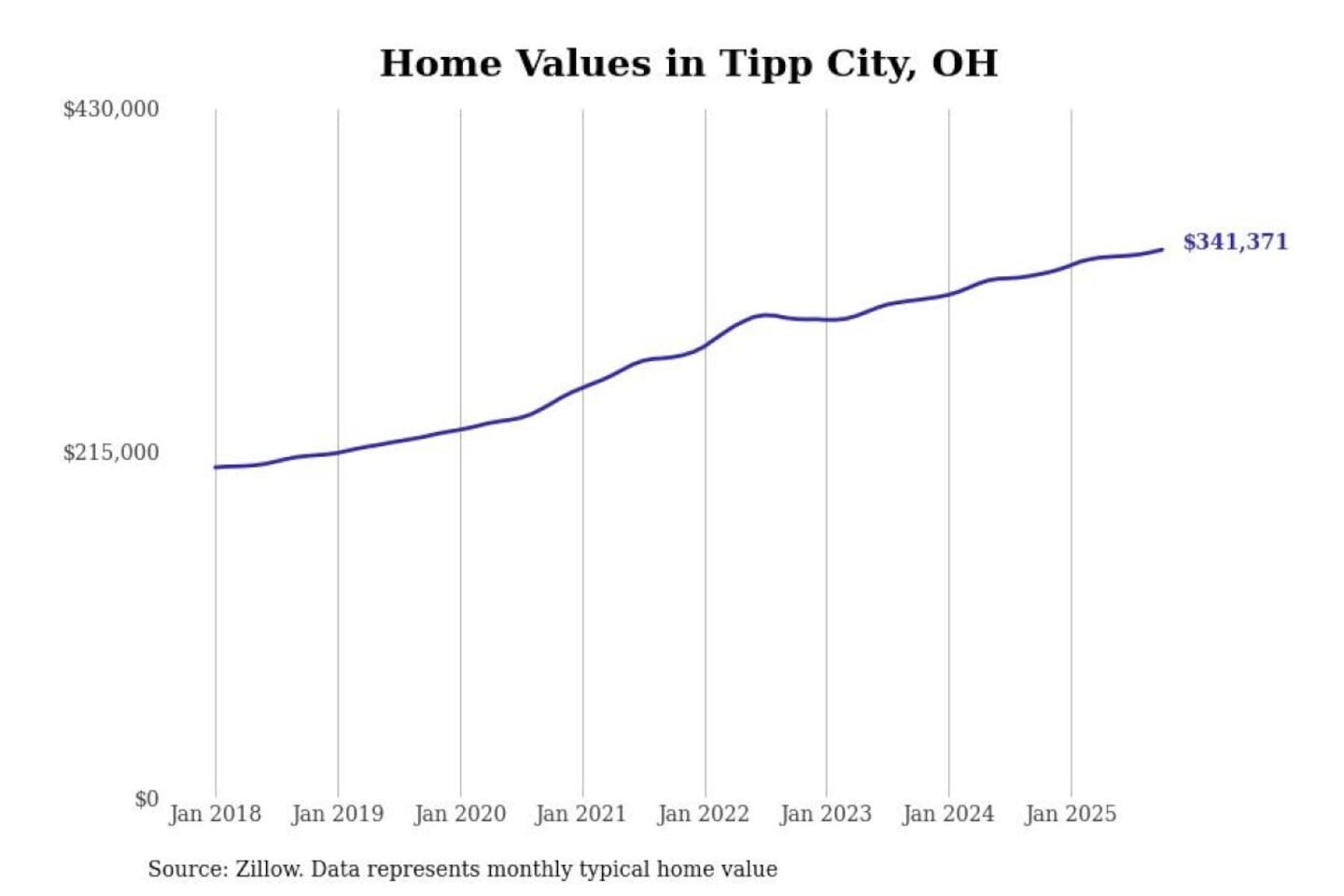Stacker compiled a list of cities with the most expensive homes in the Dayton-Kettering, OH metro area using data from Zillow. Charts show the monthly typical home value since January 2018.