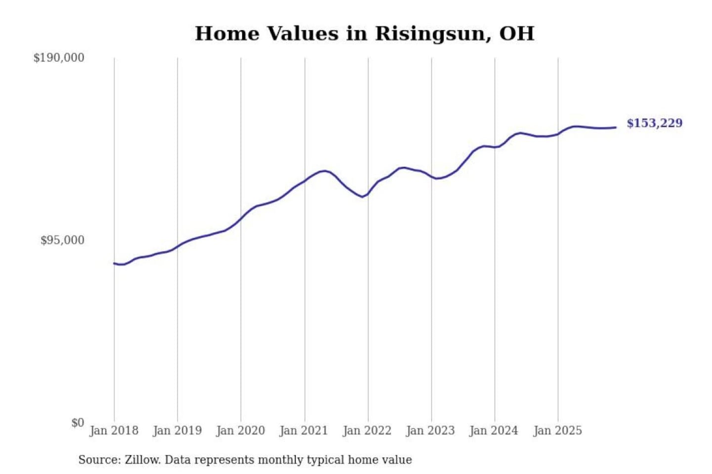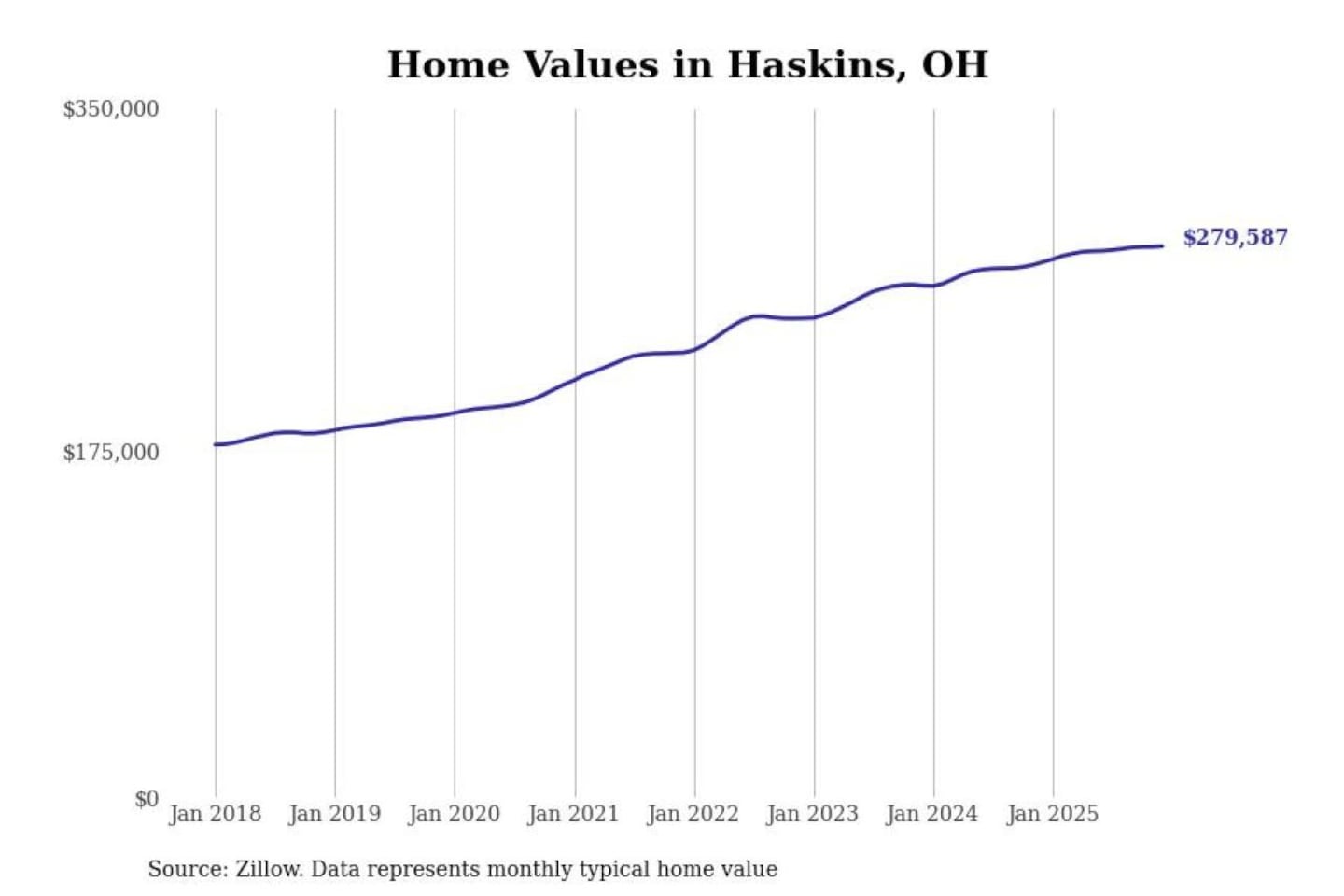 Stacker compiled a list of cities with the most expensive homes in the Toledo, OH metro area using data from Zillow. Charts show the monthly typical home value since January 2018.