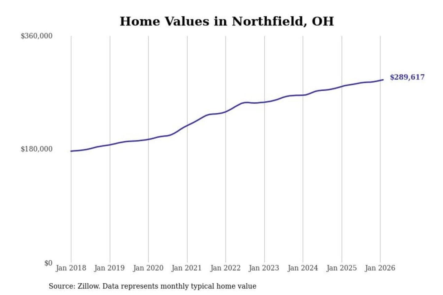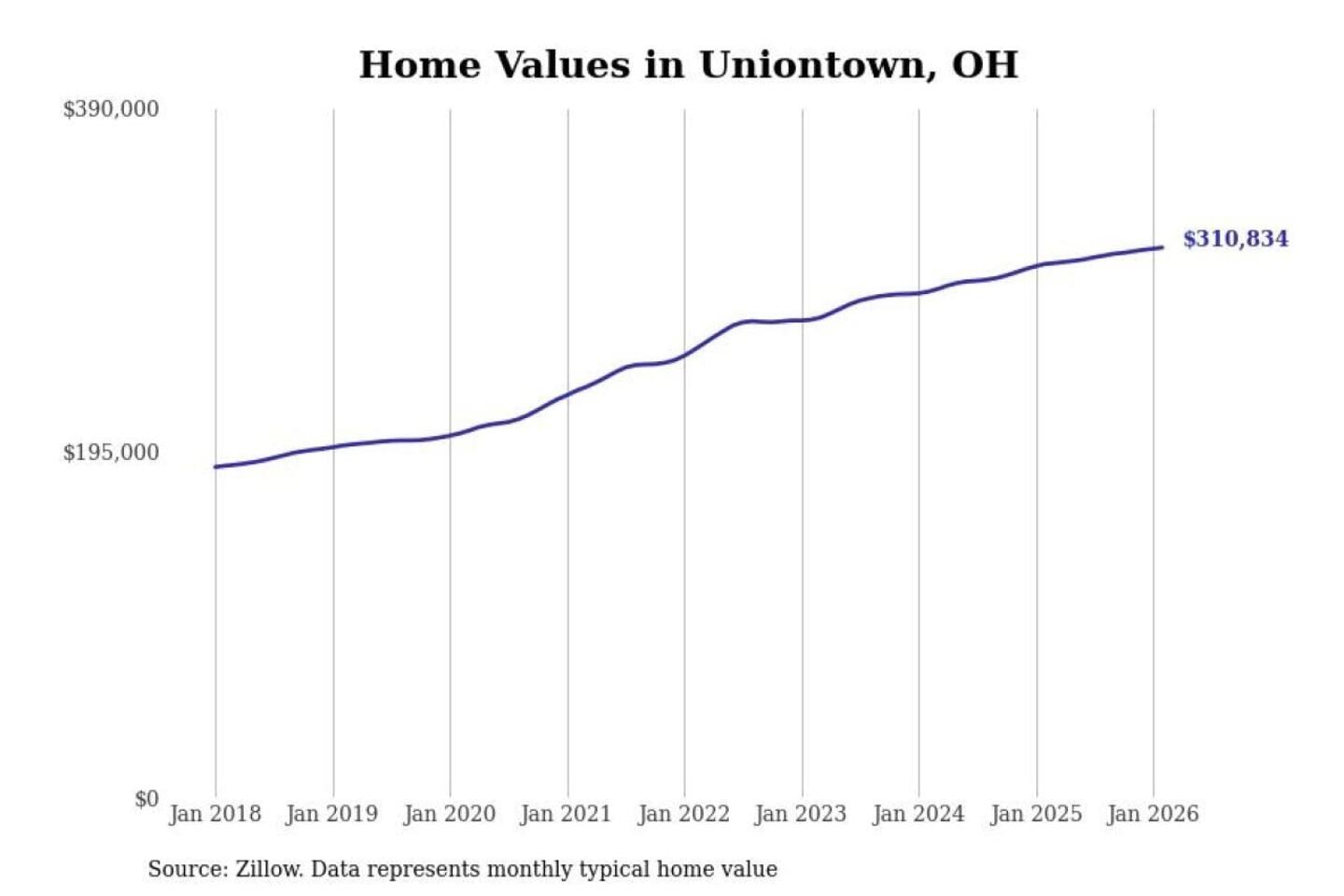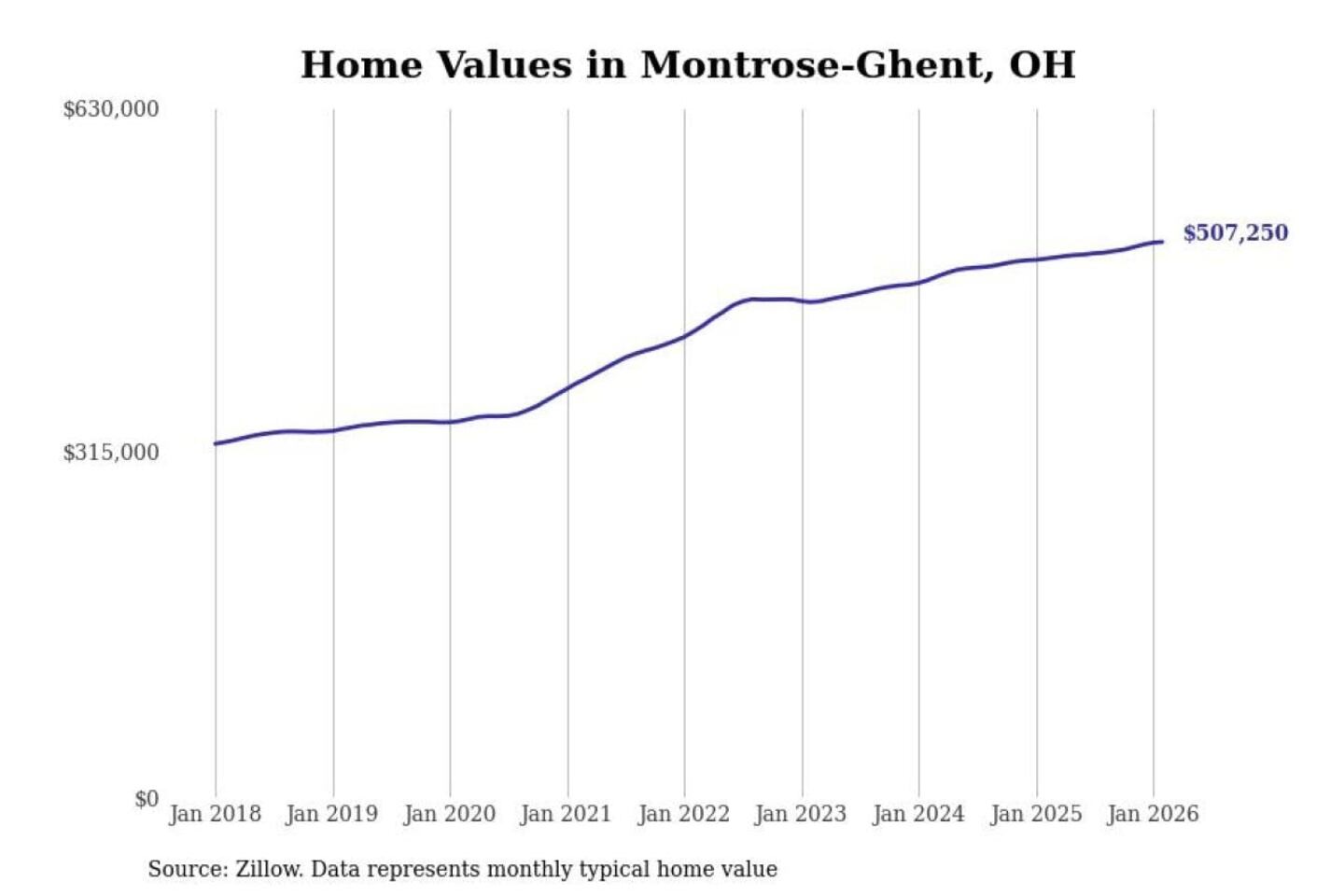 Stacker compiled a list of cities with the most expensive homes in the Akron, OH metro area using data from Zillow. Charts show the monthly typical home value since January 2018.
