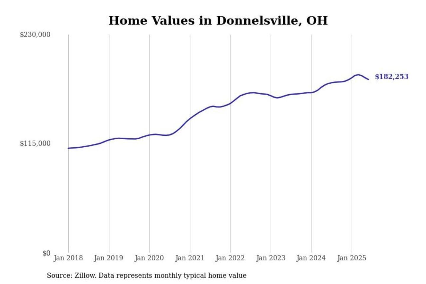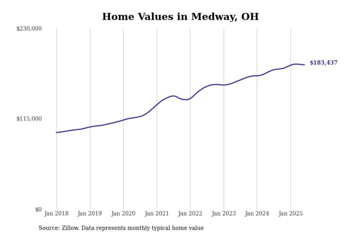 Stacker compiled a list of cities with the most expensive homes in the Springfield, Ohio metro area using data from Zillow. Charts show the monthly typical home value since January 2018. All 8 cities and towns with data available were included in the list.