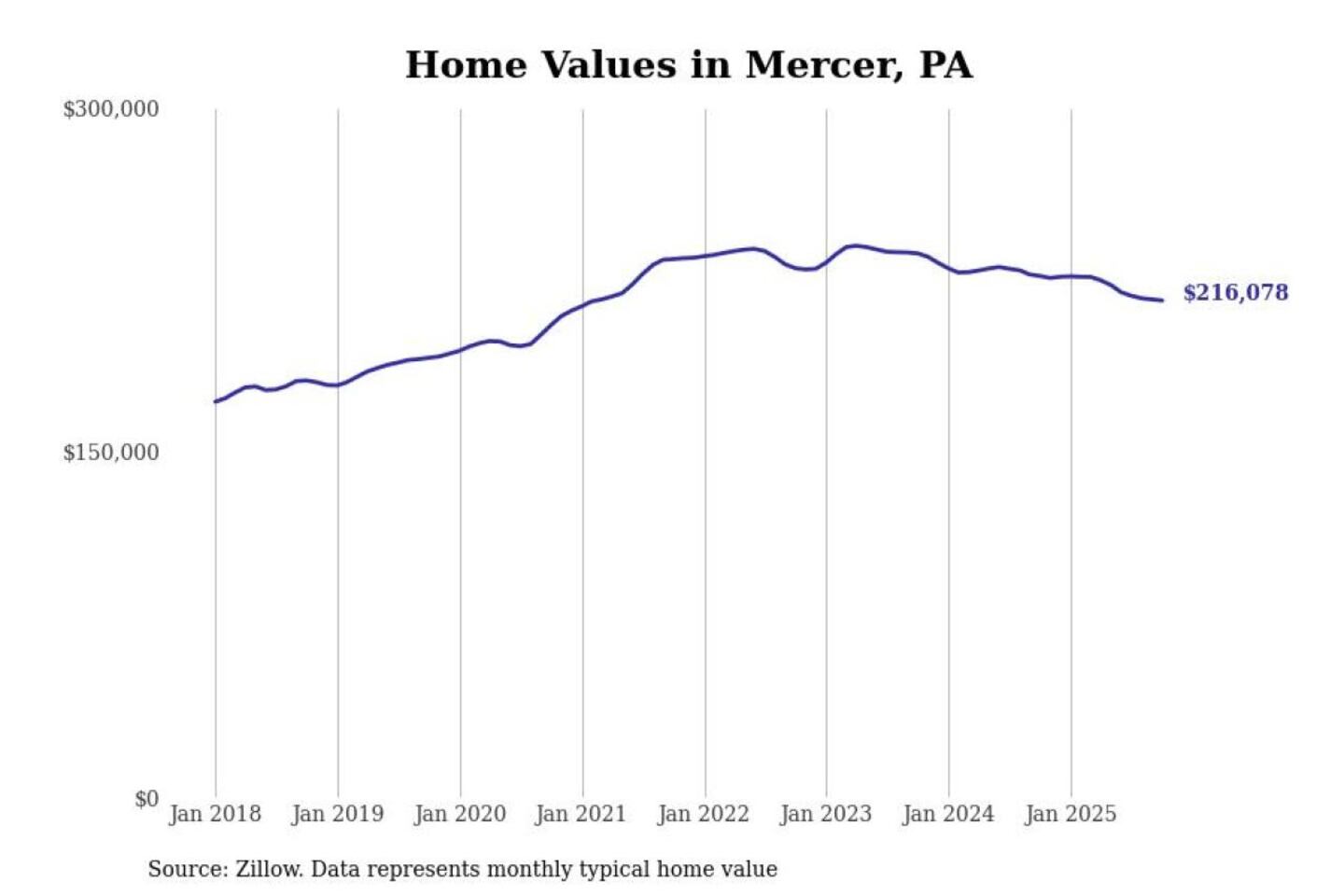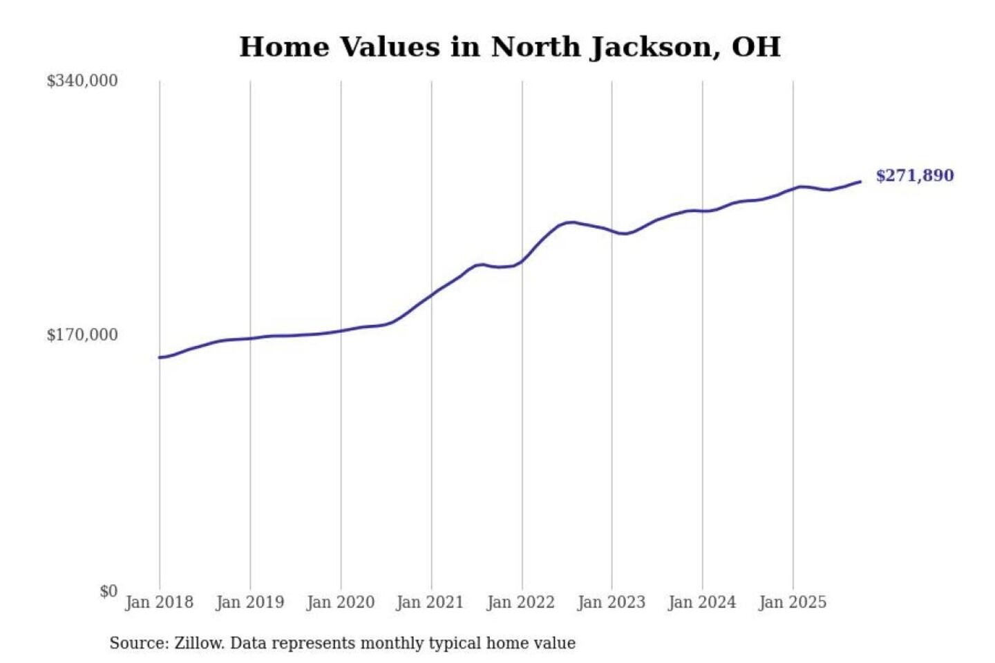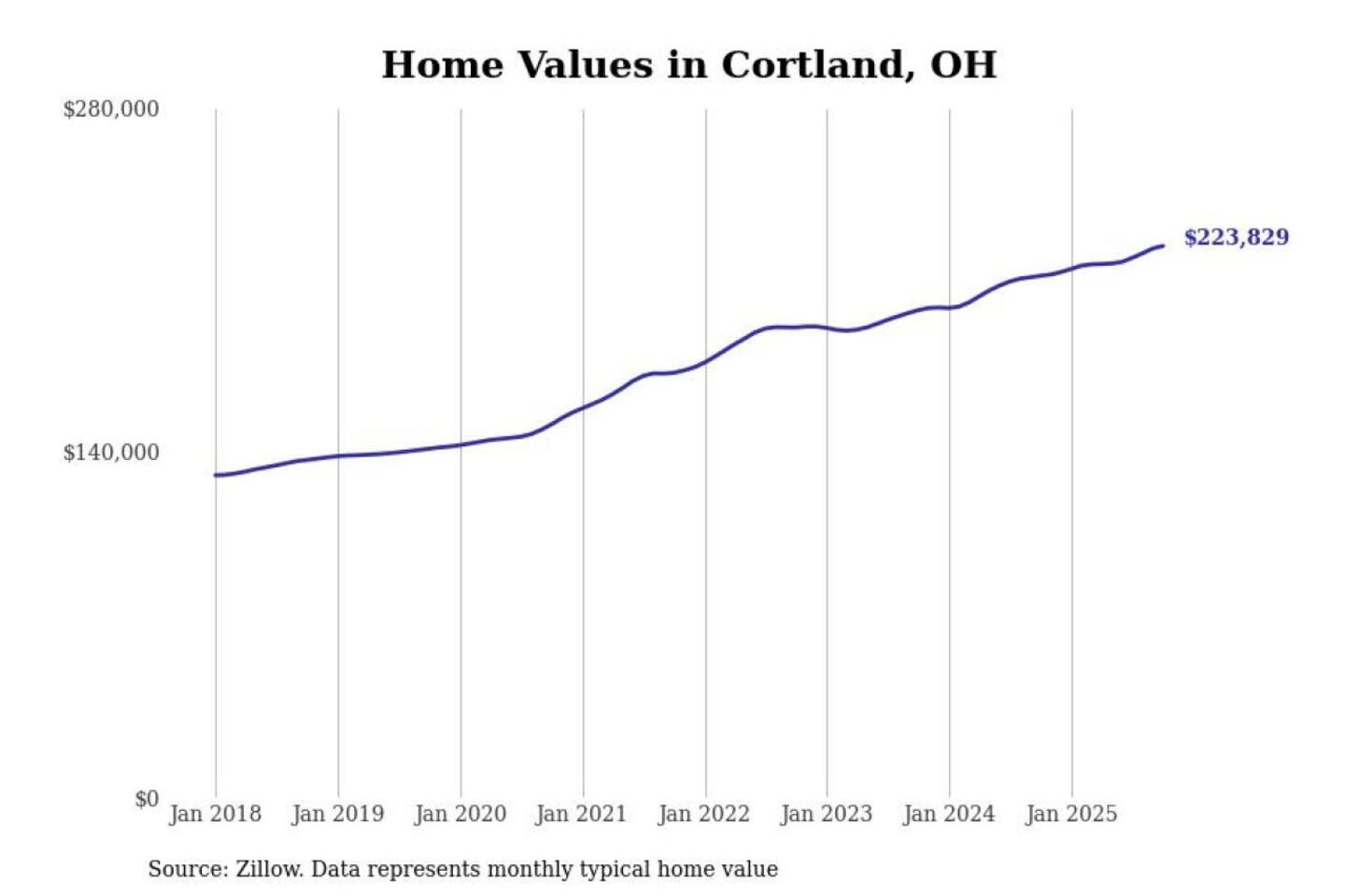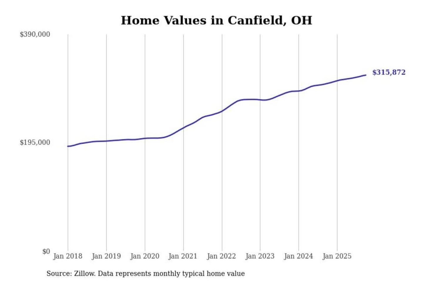 Stacker compiled a list of cities with the most expensive homes in the Youngstown metro area using data from Zillow. Charts show the monthly typical home value since January 2018. Data was available for 47 cities and towns.