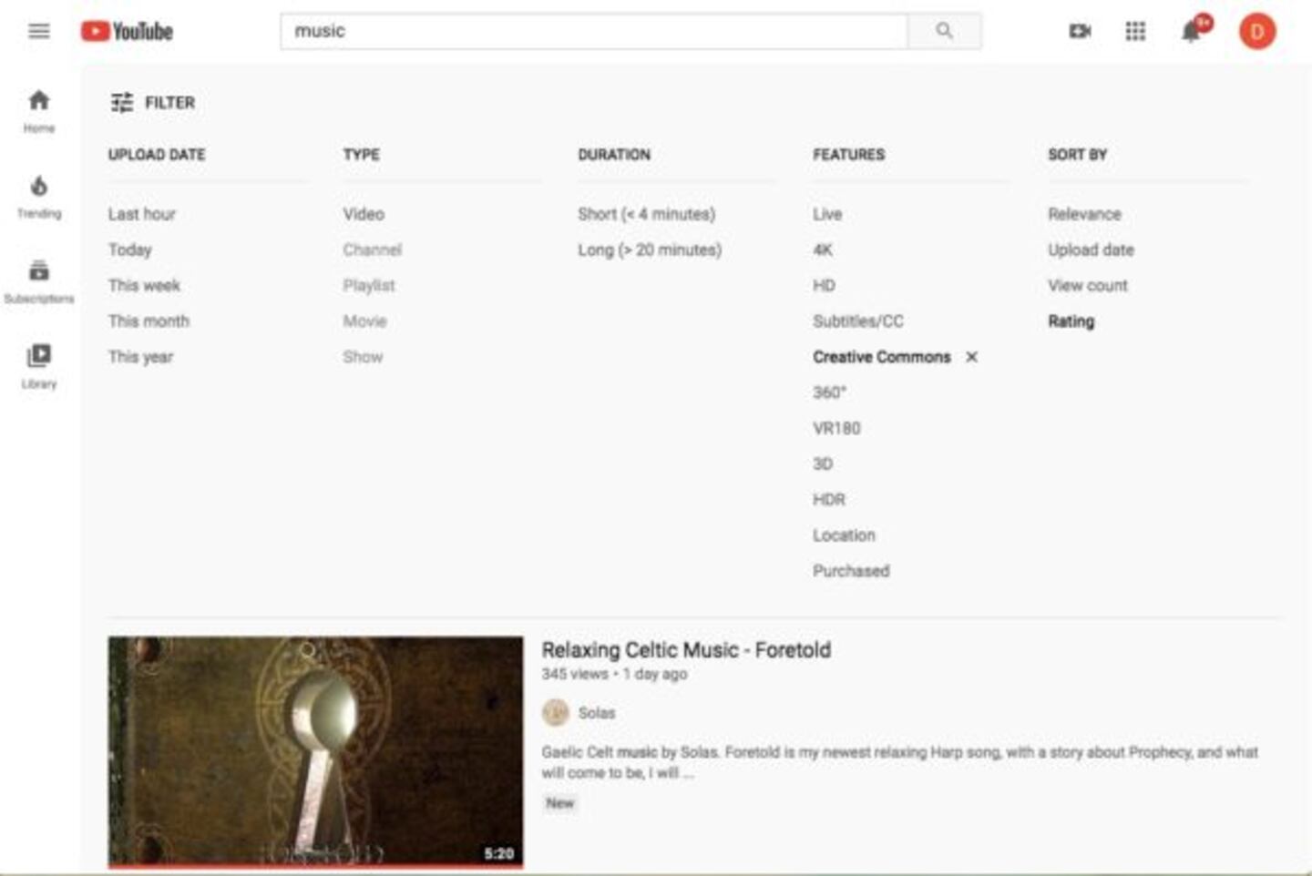 - Using the “Creative Commons” filter, it’s easy to search for music that interests you