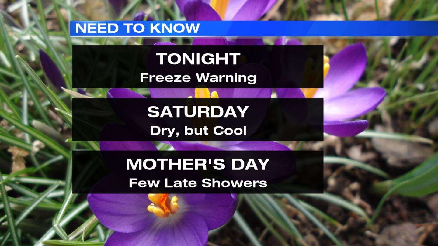 - Freeze Warning in effect Saturday morning until 9 a.m.