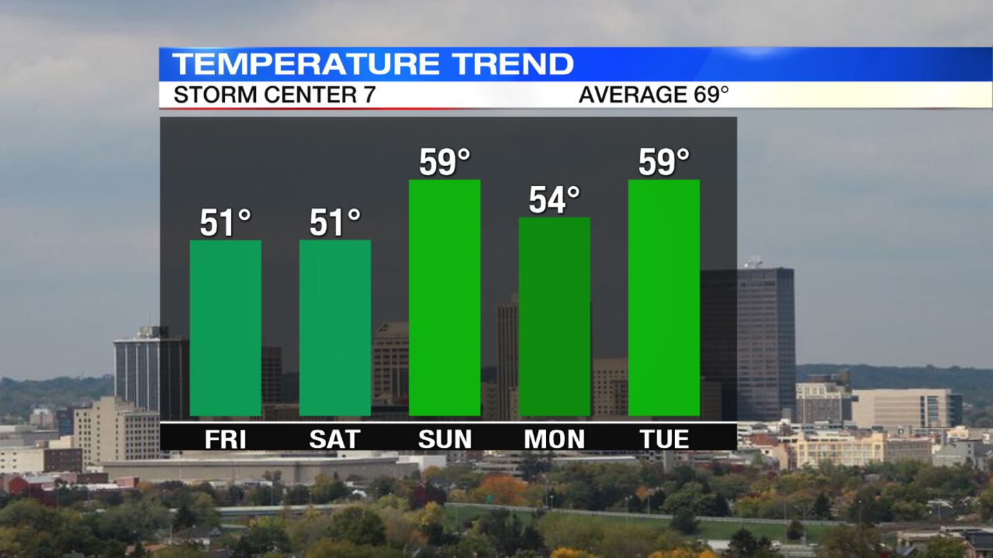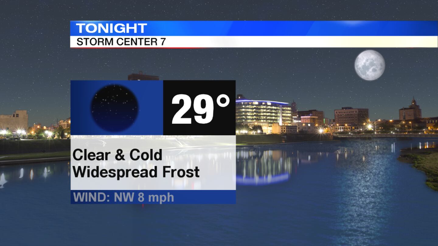 TONIGHT: Temperatures will continue to fall through the 40s tonight and skies will begin to gradually clear, Storm Center 7 Chief Meteorologist McCall Vrydaghs said.