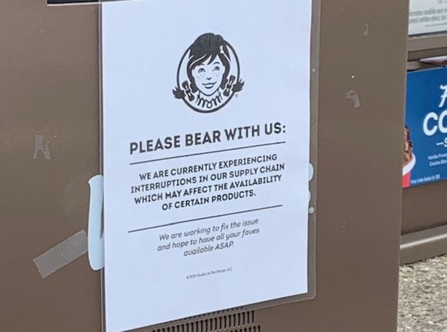 The Wendy’s on Dorothy Lane in Kettering has a sign posted in their drive-thru addressing potential shortages.