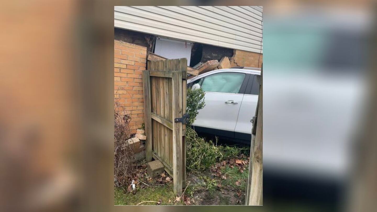 Images from the scene show damage to side of the house and the SUV suffered rear-end damage.