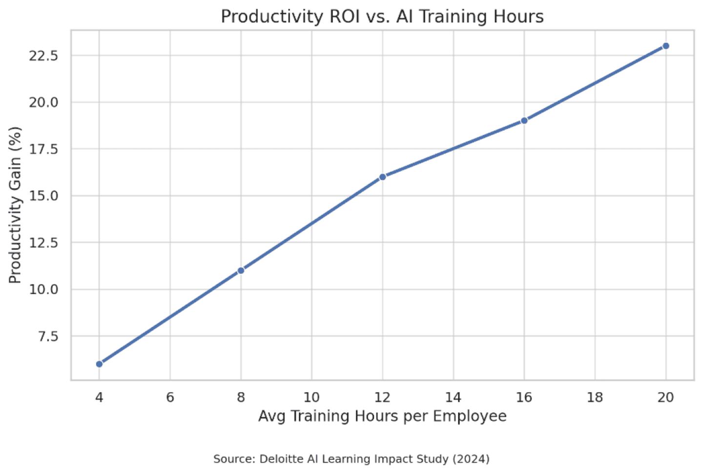AI training has evolved from a nice-to-have to a business necessity. Companies that wait another year or two to build AI literacy across their teams will find themselves competing against those where using AI is second nature to everyone.