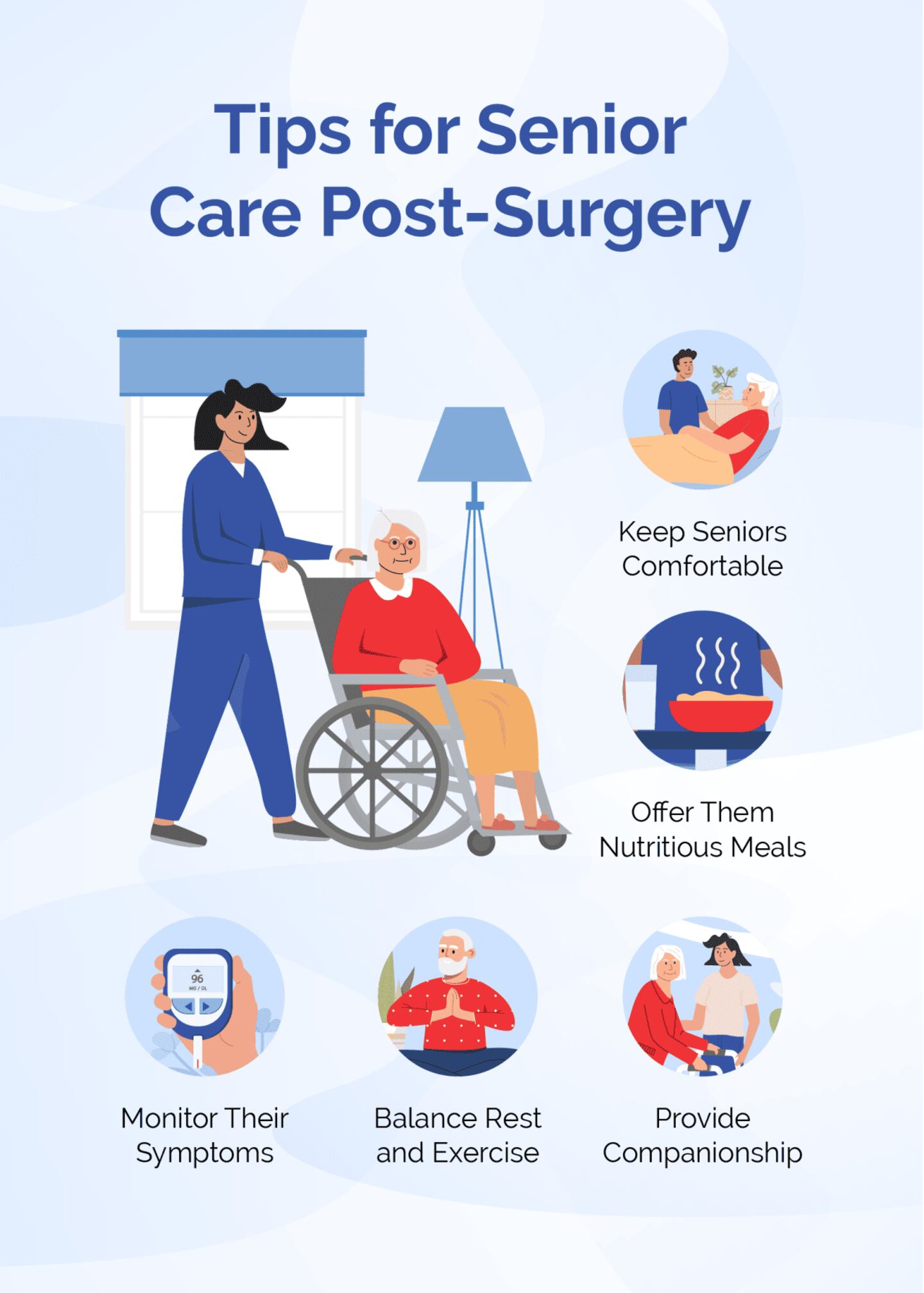 You can implement a few measures to help older adults heal and reduce their discomfort after surgery. Because seniors are often more fragile than younger adults, it’s important to be patient and take things slowly. Appropriate support can help seniors recover more quickly and have less discomfort along the way.