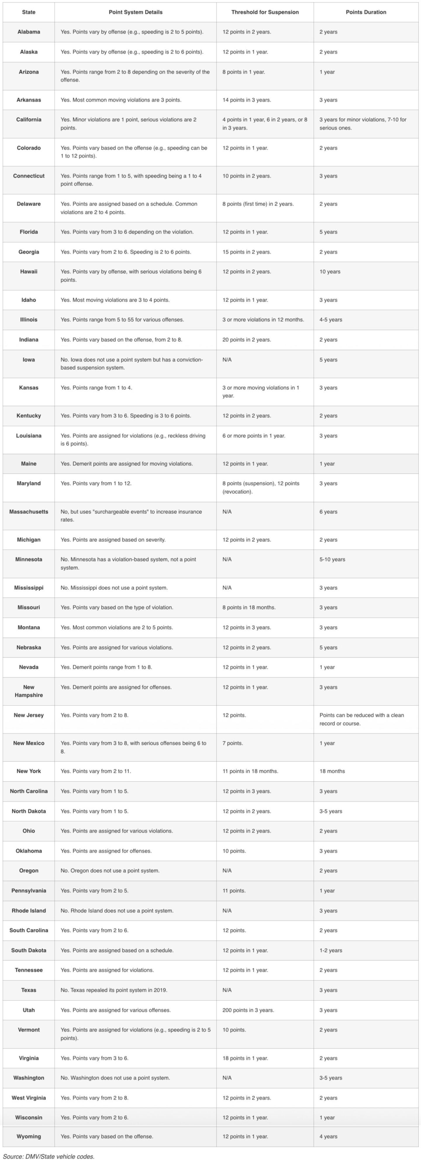 An up-to-date overview of the points system in all 50 states.