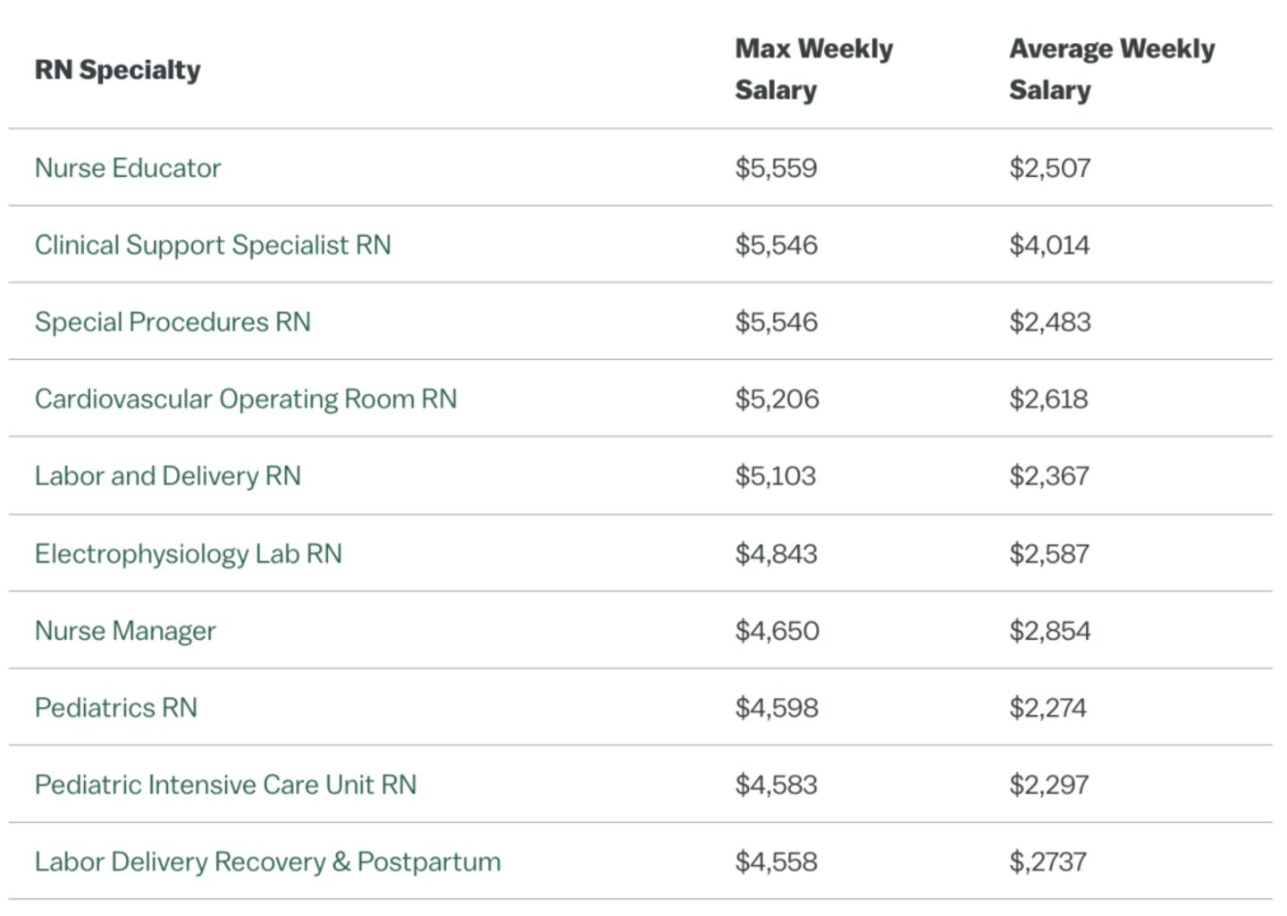 Travel Nurse Salary by Specialty