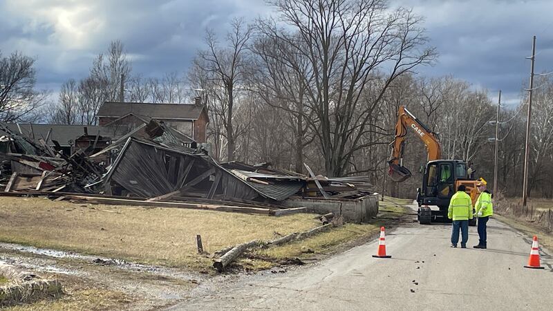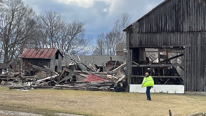 HARRISON TWP., Preble County — As high winds pushed through the Miami Valley Thursday, an old barn near Lewisburg sustained significant damage and resulted in an emergency demolition.