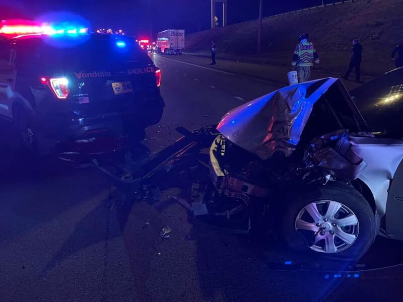 A passenger vehicle struck a semi trailer stopped alongside the road, the post stated. As police and fire crews were arriving, a second passenger vehicle struck a Vandalia Police cruiser that was stopped providing traffic control.