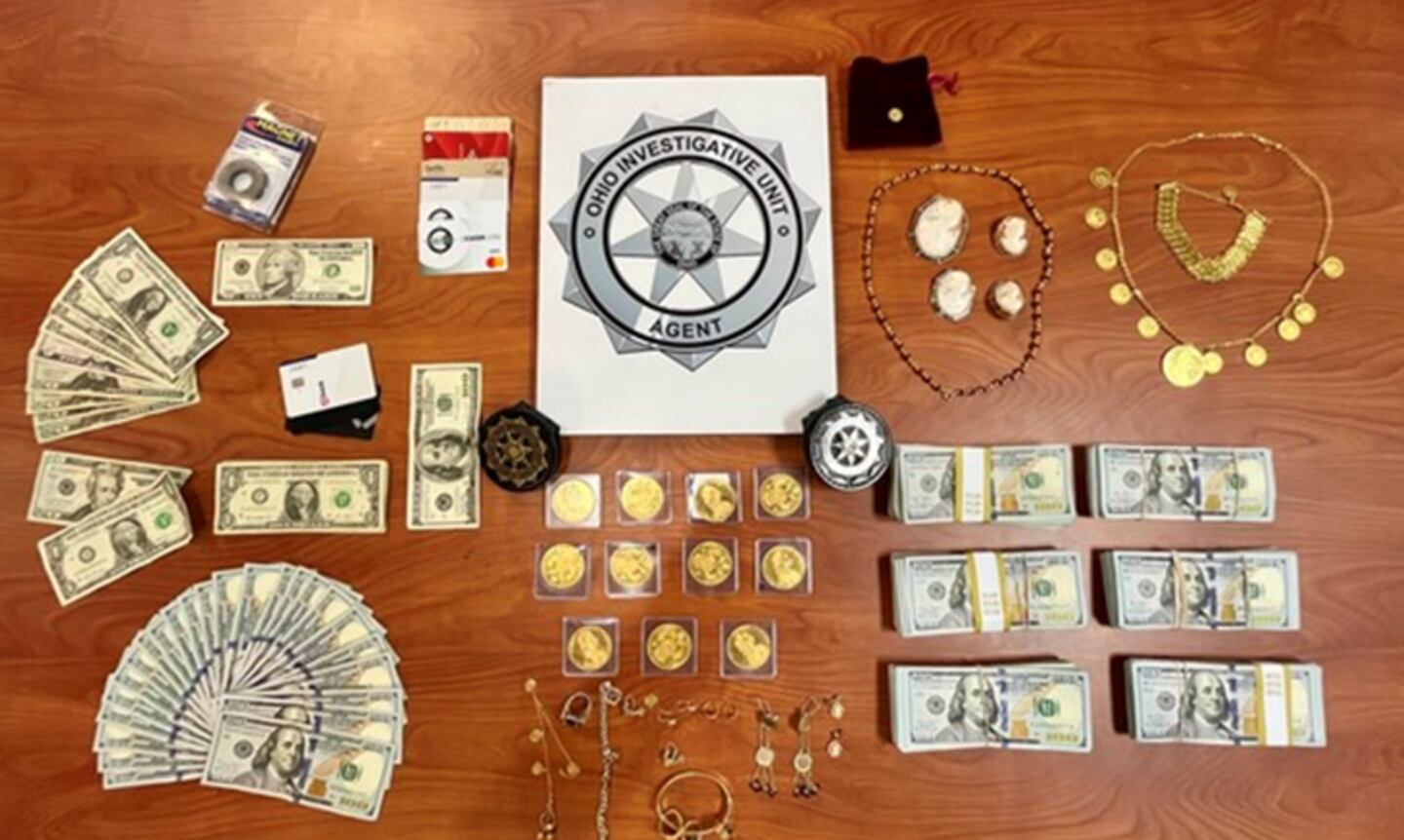 After obtaining a search warrant for the car, investigators found over $62,000 in cash, several gold coins, gold jewelry, four cell phones, suspected cloned credit cards and records inside.
