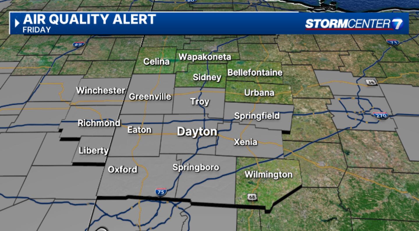 The Air Quality Alert has been issued for Clark, Darke, Greene, Miami, Montgomery, and Preble counties.