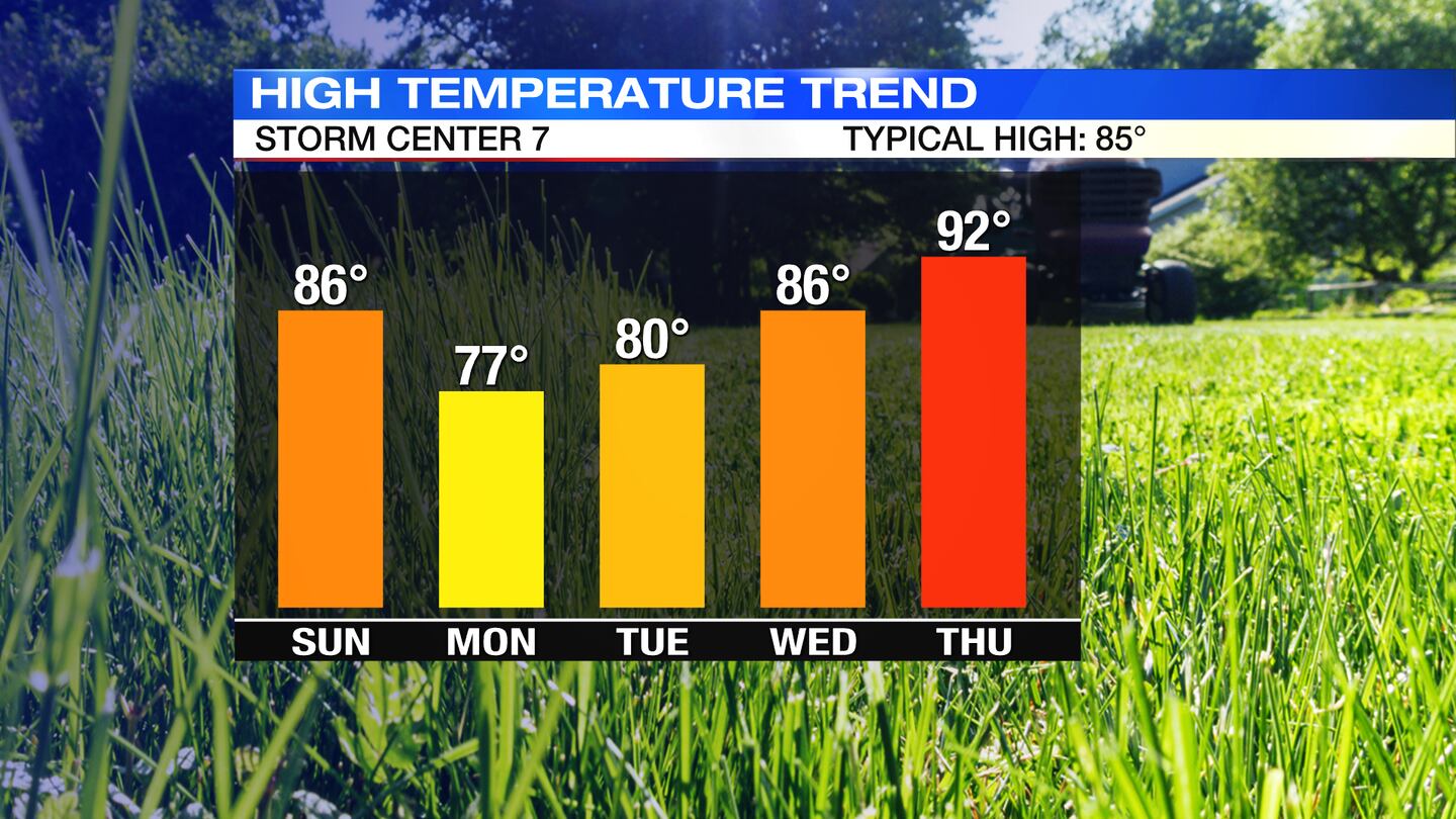 WEDNESDAY: Mostly sunny to partly cloudy skies and warmer. Highs in the upper 80s.