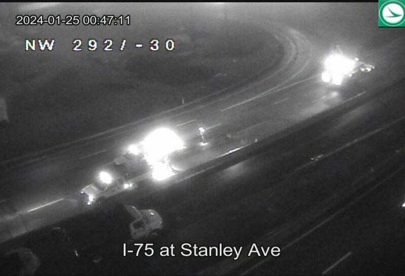 ODOT cameras showed the left lanes were closed on SB I-75 between Stanley Avenue and Wagner Ford Road just after midnight Thursday morning.