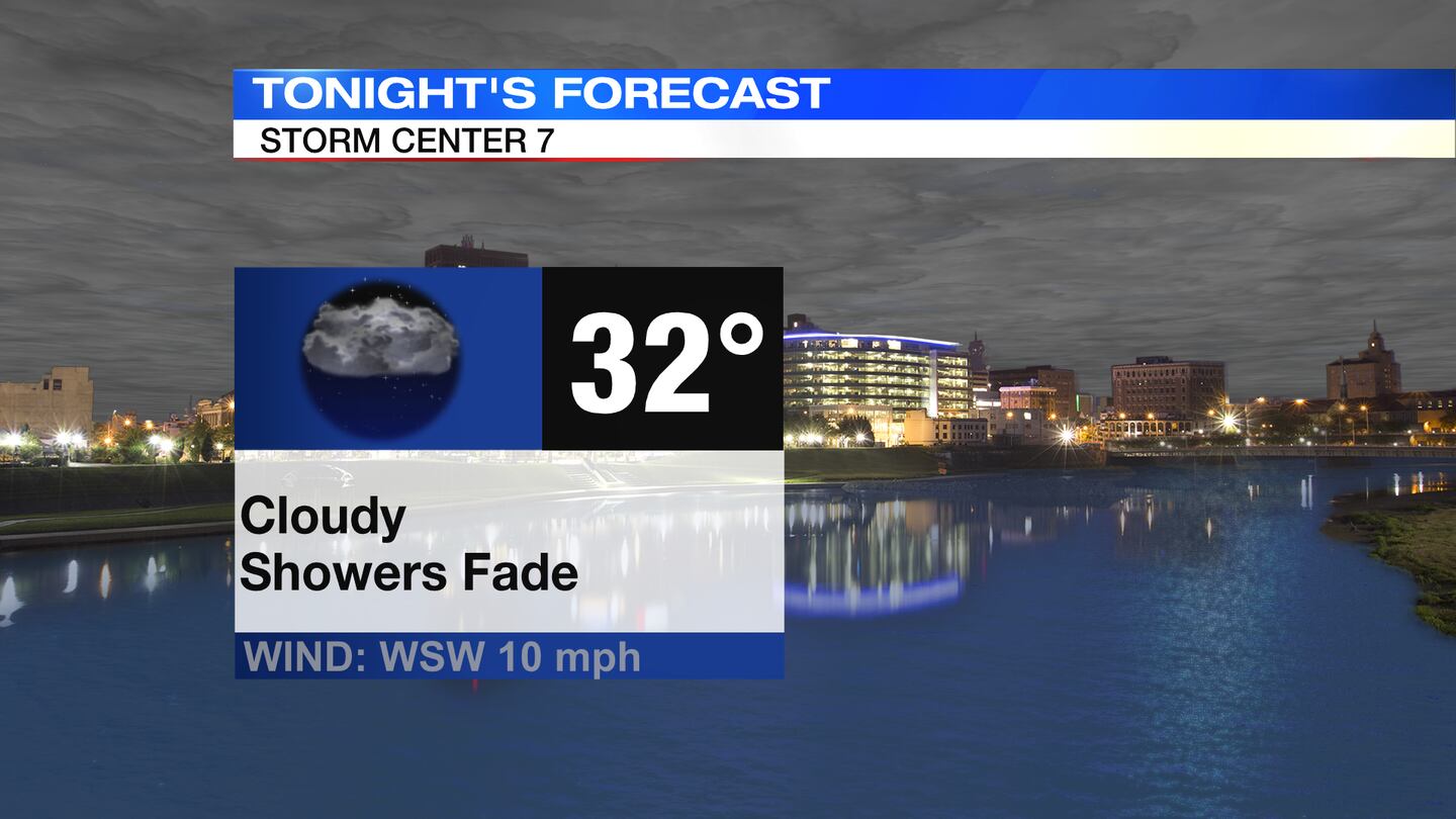 OVERNIGHT: Flurries and sprinkles fade as cloud cover breaks up a bit overnight.