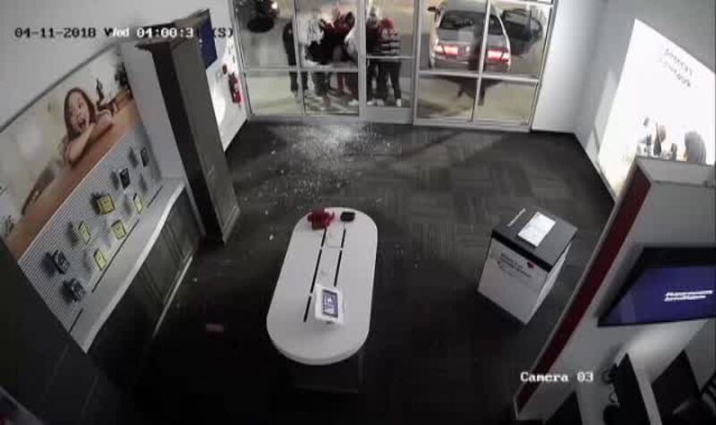 The suspects around 2:30 a.m. Wednesday parked their cars in front of the store and ran up to the front door. The store security cameras show a group of young people trying to throw a rock through the door, but the stone repeatedly bounces back.