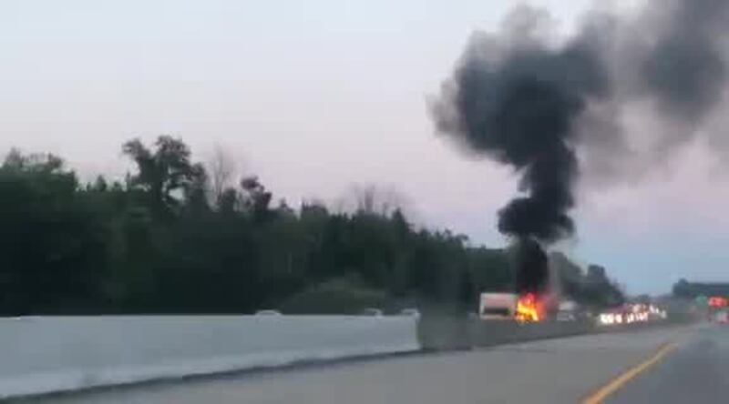 The car fire was reported around 9:15 p.m. on I-70 at mile marker 25, not far from Salem Avenue in Clayton.