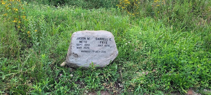 Frye said he decided to keep the message on the memorial boulder for his husband’s grave simple because there was limited space on its face. In August, the boulder was placed on the gravesite and included their names, dates of birth and Neto’s death, and the line “married 23 July 2016.”