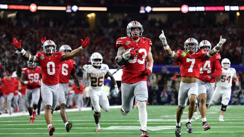 Standout defensive end Jack Sawyer forced Texas quarterback Quinn Ewers to fumble on a critical fourth down with Texas inside the Ohio State 10-yard-line. Sawyer scooped-and-scored after picking up the loose ball and ran 83 yards into the endzone to put the Buckeyes up for good.