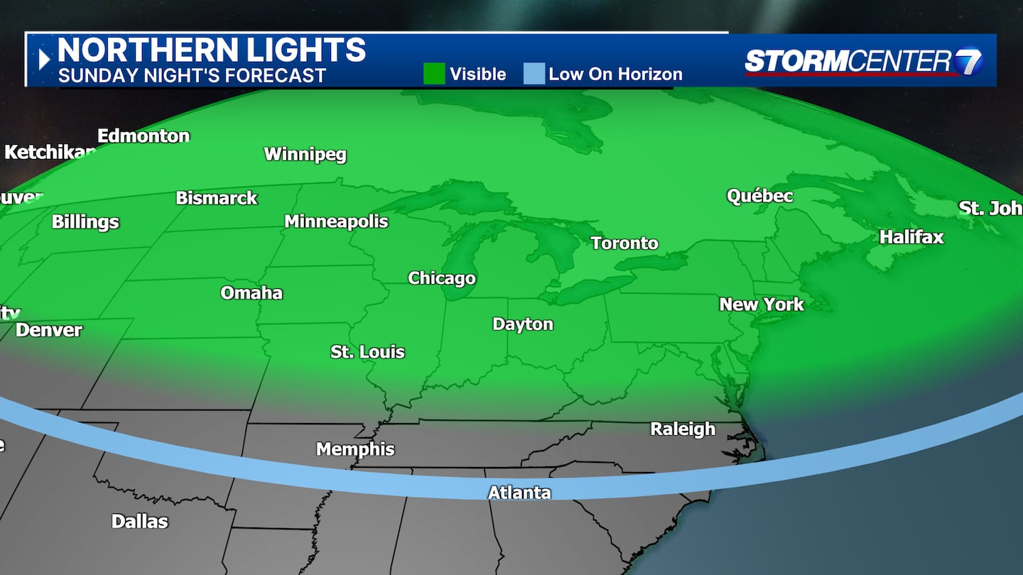 DAYTON — The Miami Valley has a legitimate shot to see the northern lights on Sunday and Monday nights, according to Storm Center 7’s Nick Dunn.