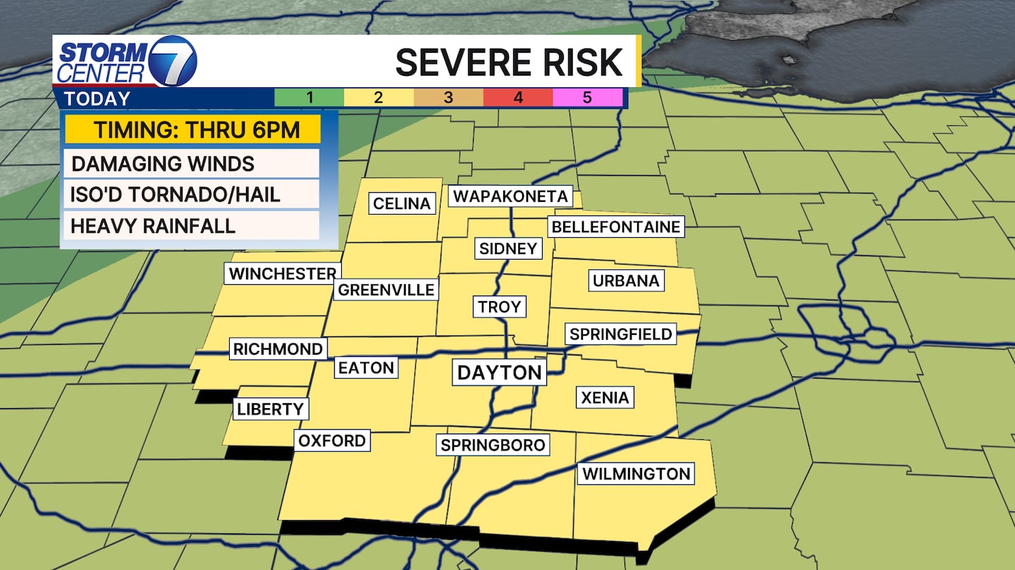 The entire Miami Valley is under a Level 2 of 5 (Slight) risk for severe storms today.