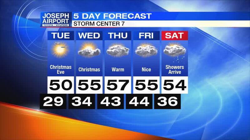 Christmas: Highs will be in the mid-50s again on Wednesday with dry weather and a mix of sunshine and clouds.