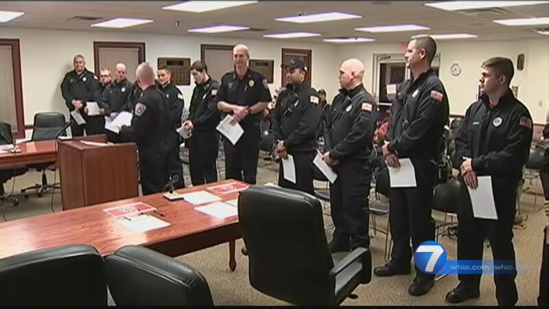 The Clearcreek Fire District crew that saved a trucker trapped in the fiery wreckage of his semitrailer on U.S. 42 in late October were honored Tuesday night for the valor they displayed in reacting at a scene their chief said looked like something you'd see on TV.