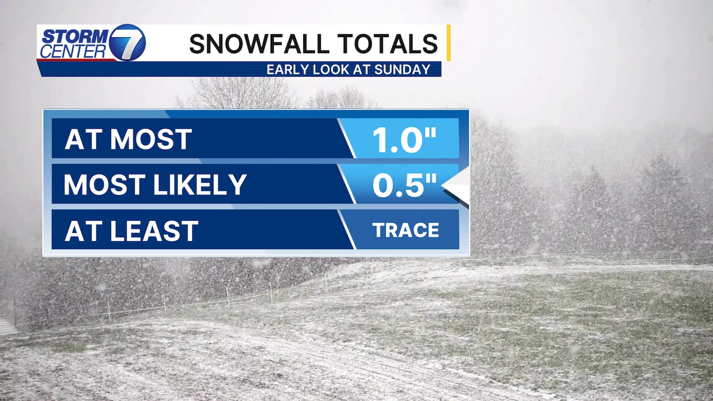 Snowfall totals do not look very impressive at all with Sunday’s system. In fact, as of this morning I expect no more than 0.5″ in most areas, with the top amount being 1″ if a band or two of snow out performs expectations. Newer data coming in over the next 24 hours will help us finalize if these current trends hold or if any changes are needed.