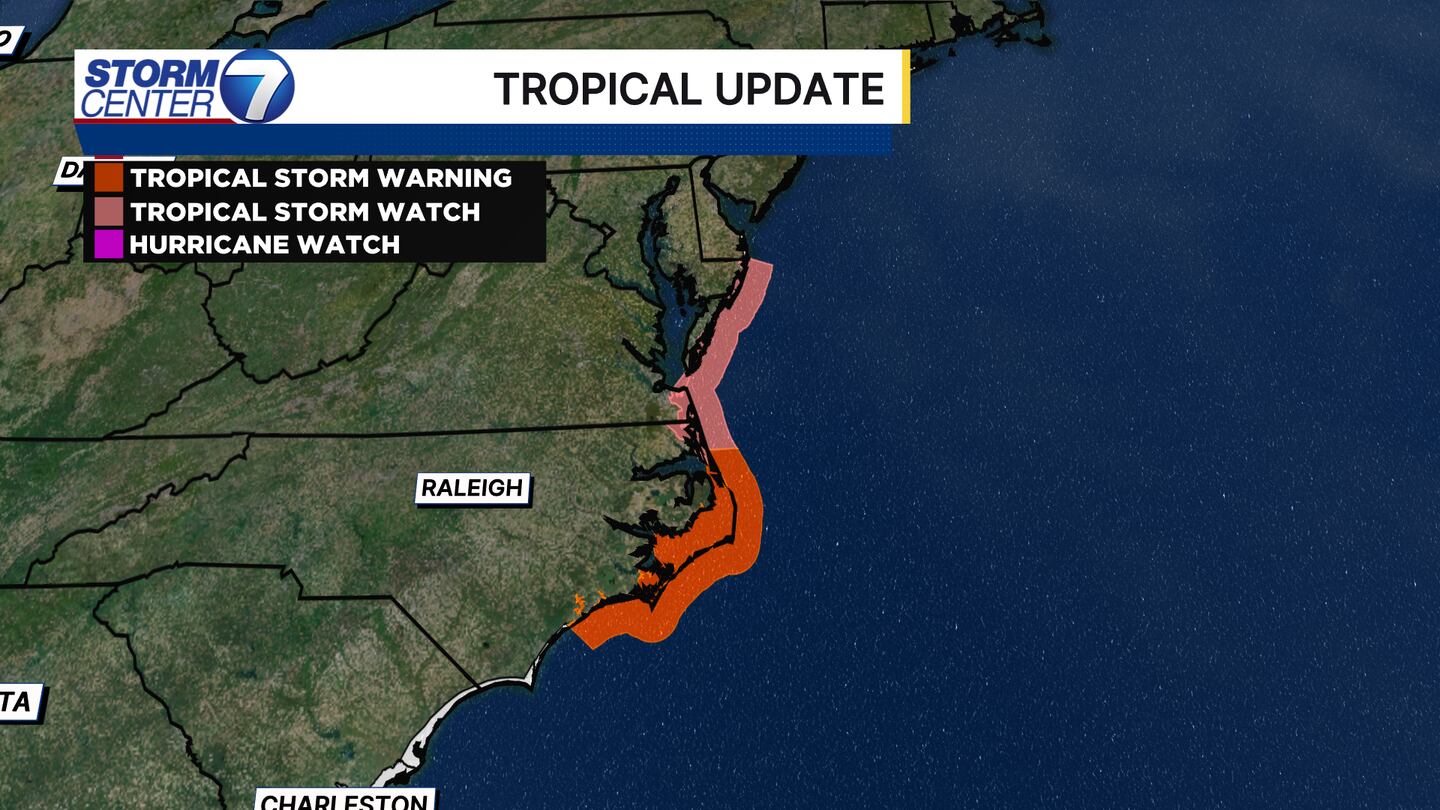 Even tropical storm force watches and warnings are in effect from coastal Maryland down through most of the North Carolina coast. This is for wind gusts upwards of 60 miles per hour and seas as high as 23 feet across coastal waters, according to the National Weather Service.