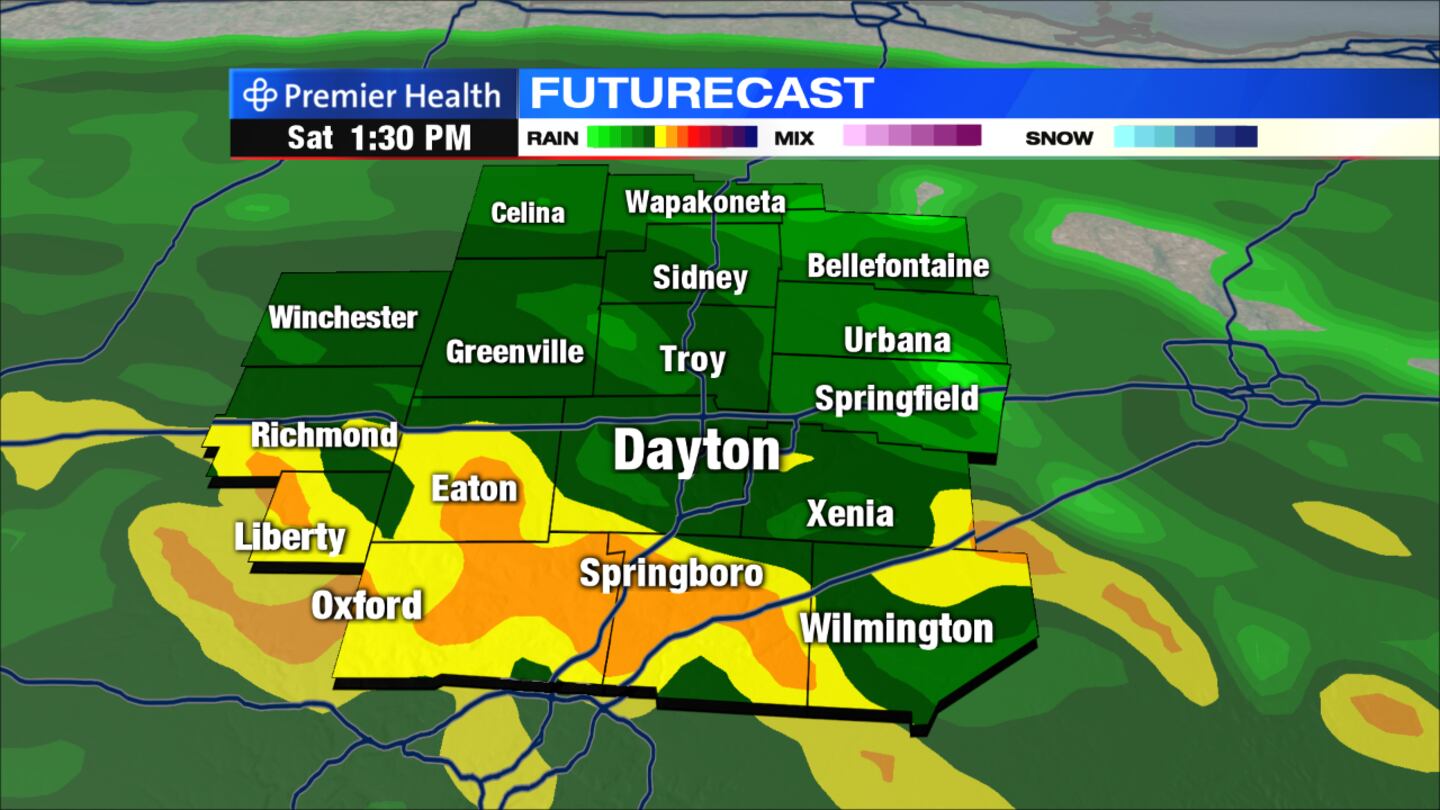 - Heavy rain moves in Saturday